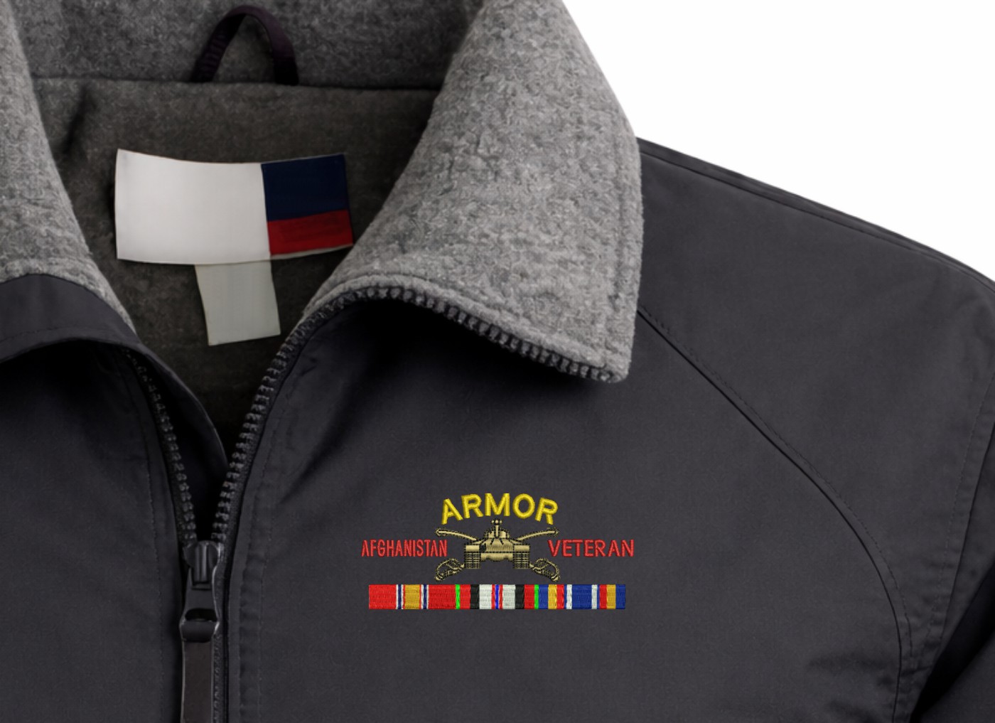 Note: Some of the Color Options pictured may not be available. Available Color Options are listed on the drop down menu above.MilitaryBest is proud to offer this quality U.S. Army Armor Afghanistan Veteran 3-Season Jacket. This 3-Season Jacket is made from a 3-Layer system consisting of a nylon shell, an insulator layer, Nylon-lined sleeves, and an inside layer of fleece for comfort. The jacket features include a sturdy black enamel front-zipper, raglan sleeves, outsize zip pockets, an inside zip security pocket, YKK zippers, and a banded-bottom. This Jacket will make an excellent addition to your wardrobe, or a quality gift. Your satisfaction is guaranteed! Depending on your location this jacket can be worn in fall, winter, and spring. These quality Military Jackets are proudly embroidered at our facilities in Scottsboro, AL. Support the Army MWR program by purchasing only from Licensed Vendors.