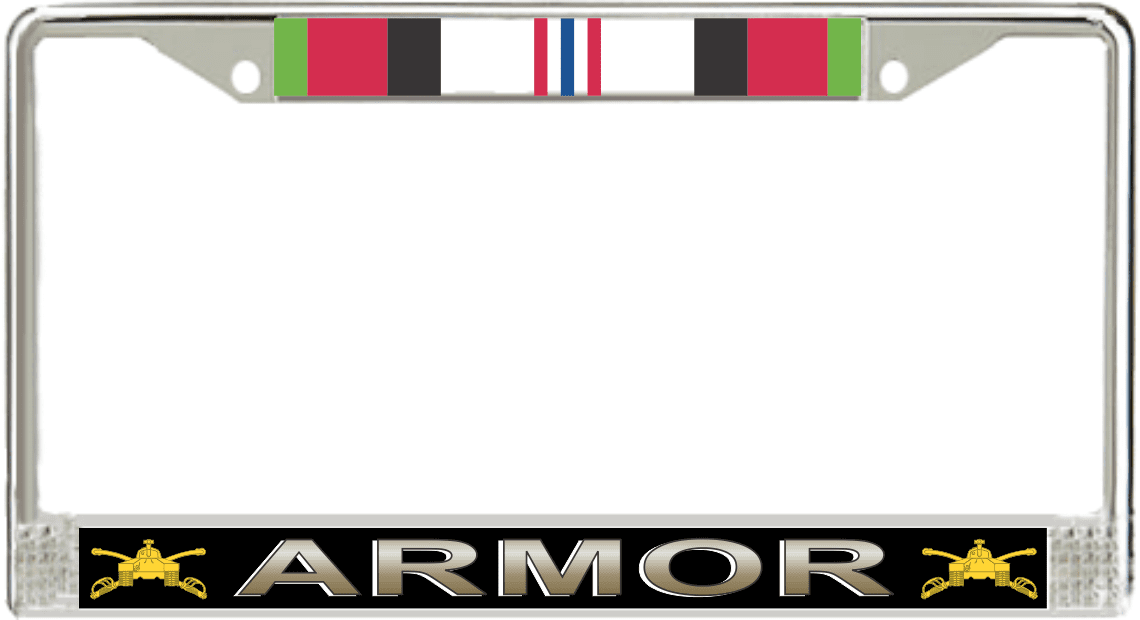 This U.S. Army Armor Afghanistan Veteran License Plate Frame is made from the highest quality finished metal alloy. Each one is designed to provide years of use. Each is designed and produced in our facility in Scottsboro, Alabama. Our Military License Plate Frames are standard designs and have been a staple in our product line for 15 years. Please check with your state and local regulations regarding suitability for displaying this License Plate Frame on you vehicle since these regulations may have changed over time.A percentage of the sale of each MilitaryBest item is forwarded to the licensing departments of each respective branch of service in support of the MWR (Morale, Welfare, & Recreation) program. These payments are made by either ALL4U LLC or the wholesaler from where the item originated. Our team thanks you for your service and your support of these programs.