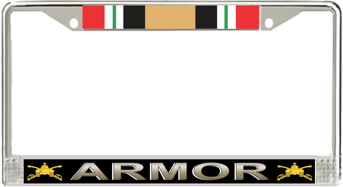 This U.S. Army Armor Iraq Veteran License Plate Frame is made from the highest quality finished metal alloy. Each one is designed to provide years of use. Each is designed and produced in our facility in Scottsboro, Alabama. Our Military License Plate Frames are standard designs and have been a staple in our product line for 15 years. Please check with your state and local regulations regarding suitability for displaying this License Plate Frame on you vehicle since these regulations may have changed over time.A percentage of the sale of each MilitaryBest item is forwarded to the licensing departments of each respective branch of service in support of the MWR (Morale, Welfare, & Recreation) program. These payments are made by either ALL4U LLC or the wholesaler from where the item originated. Our team thanks you for your service and your support of these programs.