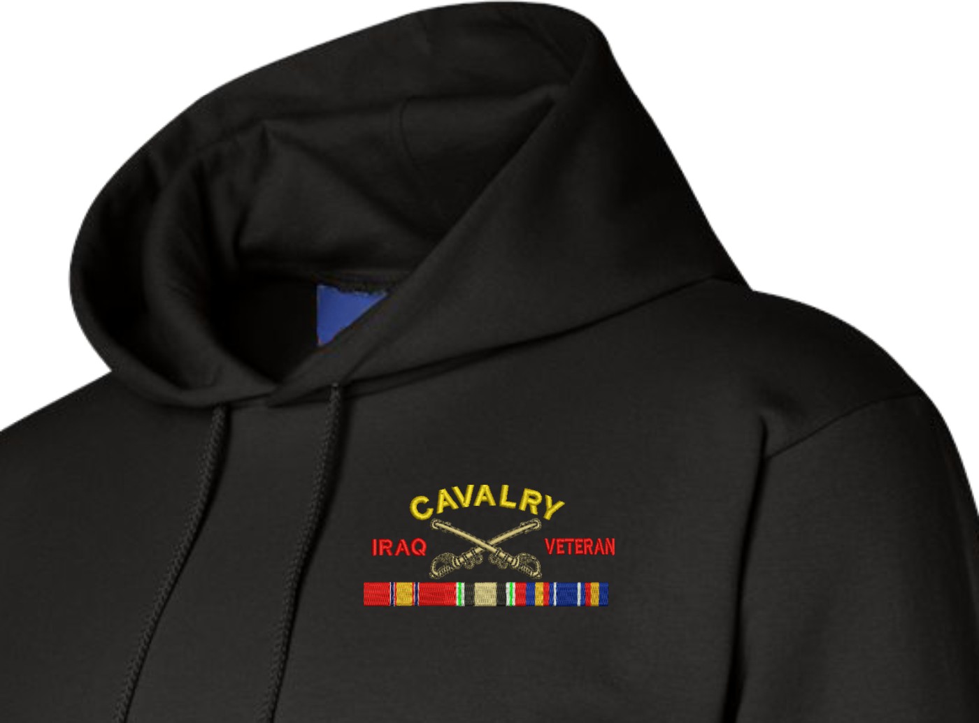 MilitaryBest has expanded its line of apparel with this custom embroidered U.S. Army Cavalry Iraq Veteran Hoodie. Each Hoodie is direct embroidered onto a Champion brand 9.5 oz 50/50 Cotton Poly blend. This Hoodie will make an excellent addition to your wardrobe, or a great gift. Your satisfaction is Guaranteed! These quality hoodies are proudly embroidered at our facilities in Scottsboro, AL. Support the Army MWR program by purchasing only from Licensed Vendors.