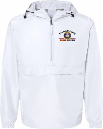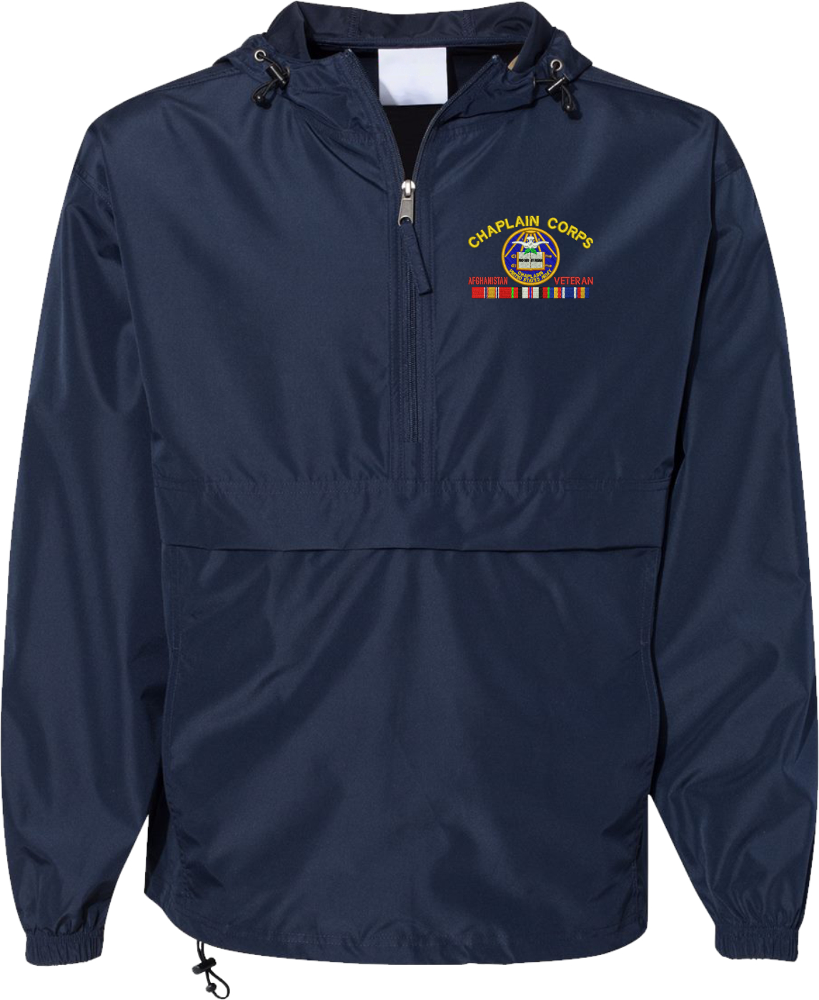 MilitaryBest is proud to offer this quality U.S. Army Chaplain Corps Afghanistan Veteran Hooded Windbreaker. Also known as an Anorak Jacket, this windbreaker is designed to keep wind and water out. With a design embroidered over the left chest, this windbreaker is embroidered to order at our facilities in Scottsboro, AL.. This windbreaker can be packed into the mesh lined pouch pocket for a more portable method of storage.- 100% Polyester
