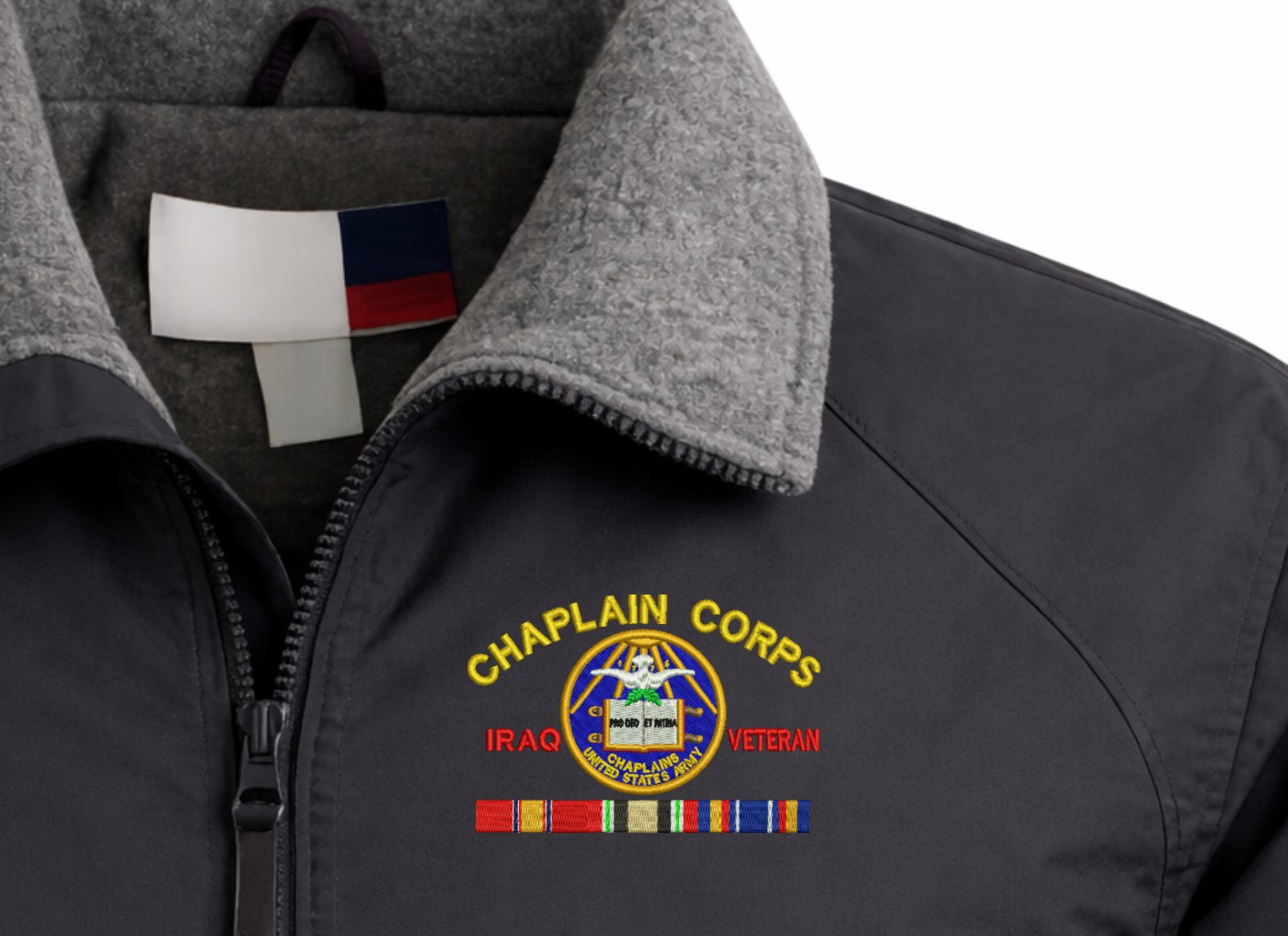 Note: Some of the Color Options pictured may not be available. Available Color Options are listed on the drop down menu above.MilitaryBest is proud to offer this quality U.S. Army Chaplain Corps Iraq Veteran 3-Season Jacket. This 3-Season Jacket is made from a 3-Layer system consisting of a nylon shell, an insulator layer, Nylon-lined sleeves, and an inside layer of fleece for comfort. The jacket features include a sturdy black enamel front-zipper, raglan sleeves, outsize zip pockets, an inside zip security pocket, YKK zippers, and a banded-bottom. This Jacket will make an excellent addition to your wardrobe, or a quality gift. Your satisfaction is guaranteed! Depending on your location this jacket can be worn in fall, winter, and spring. These quality Military Jackets are proudly embroidered at our facilities in Scottsboro, AL. Support the Army MWR program by purchasing only from Licensed Vendors.