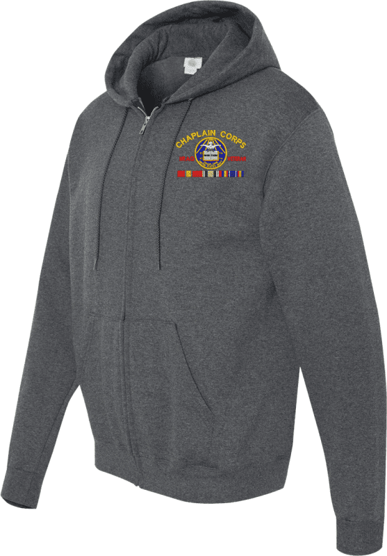 MilitaryBest has expanded its line of apparel with this custom embroidered U.S. Army Chaplain Corps Iraq Veteran Zippered Hoodie. Each Hoodie is direct embroidered onto a Champion brand 9.5 oz 50/50 Cotton Poly blend. This will make an excellent addition to your wardrobe, or a great gift. Your satisfaction is Guaranteed! These quality zippered hoodies are proudly embroidered at our facilities in Scottsboro, AL. Support the Army MWR program by purchasing only from Licensed Vendors.