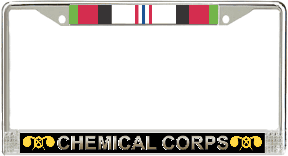 This U.S. Army Chemical Corps Afghanistan Veteran License Plate Frame is made from the highest quality finished metal alloy. Each one is designed to provide years of use. Each is designed and produced in our facility in Scottsboro, Alabama. Our Military License Plate Frames are standard designs and have been a staple in our product line for 15 years. Please check with your state and local regulations regarding suitability for displaying this License Plate Frame on you vehicle since these regulations may have changed over time.A percentage of the sale of each MilitaryBest item is forwarded to the licensing departments of each respective branch of service in support of the MWR (Morale, Welfare, & Recreation) program. These payments are made by either ALL4U LLC or the wholesaler from where the item originated. Our team thanks you for your service and your support of these programs.
