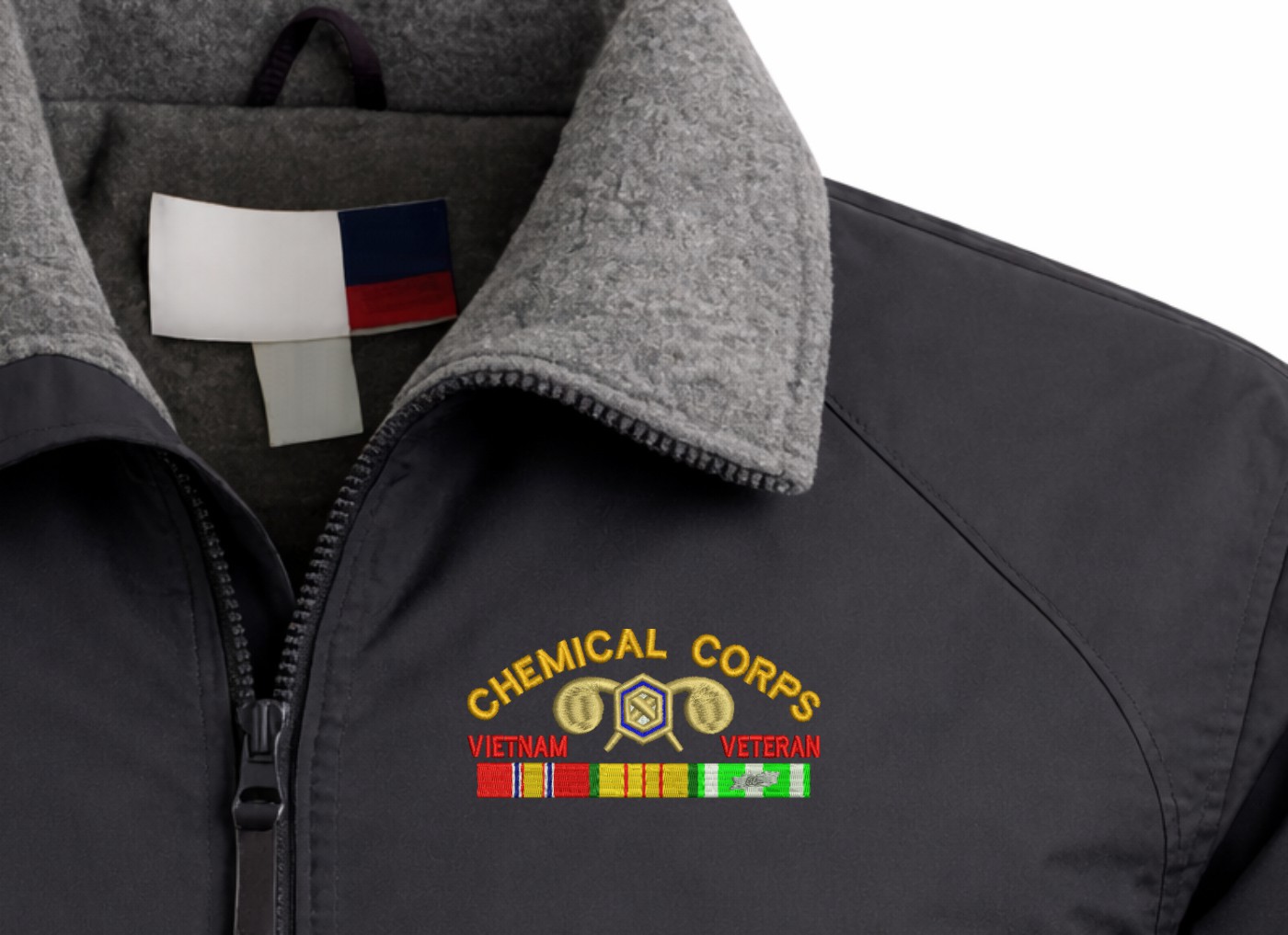 Note: Some of the Color Options pictured may not be available. Available Color Options are listed on the drop down menu above.MilitaryBest is proud to offer this quality U.S. Army Chemical Corps Vietnam Veteran 3-Season Jacket. This 3-Season Jacket is made from a 3-Layer system consisting of a nylon shell, an insulator layer, Nylon-lined sleeves, and an inside layer of fleece for comfort. The jacket features include a sturdy black enamel front-zipper, raglan sleeves, outsize zip pockets, an inside zip security pocket, YKK zippers, and a banded-bottom. This Jacket will make an excellent addition to your wardrobe, or a quality gift. Your satisfaction is guaranteed! Depending on your location this jacket can be worn in fall, winter, and spring. These quality Military Jackets are proudly embroidered at our facilities in Scottsboro, AL. Support the Army MWR program by purchasing only from Licensed Vendors. To all of our Vietnam Veterans, Welcome Home!