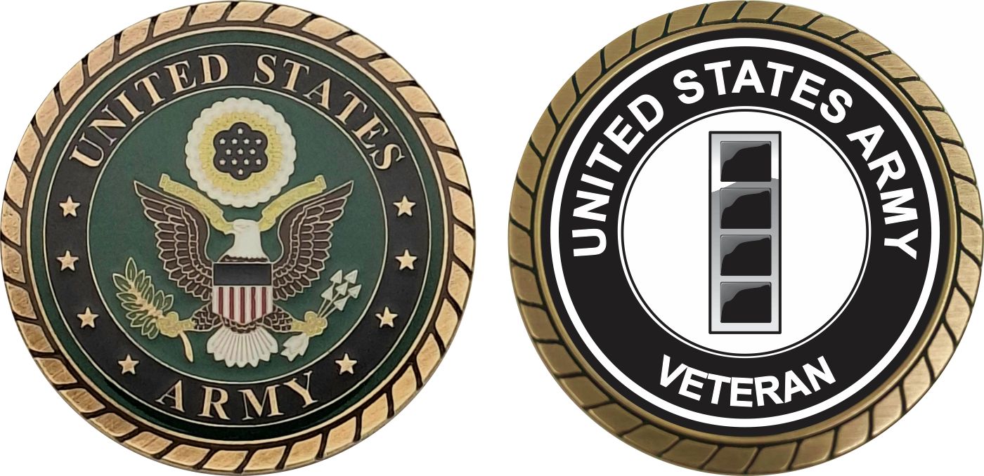 This 1 3/4” U.S. Army Chief Warrant Officer 4 Veteran Challenge Coin is proudly offered by MilitaryBest. This Officially Licensed Army coin has beautiful enamel finish on one side and an organized crisp clean U.S. Army Chief Warrant Officer 4 Veteran design on the opposite side.