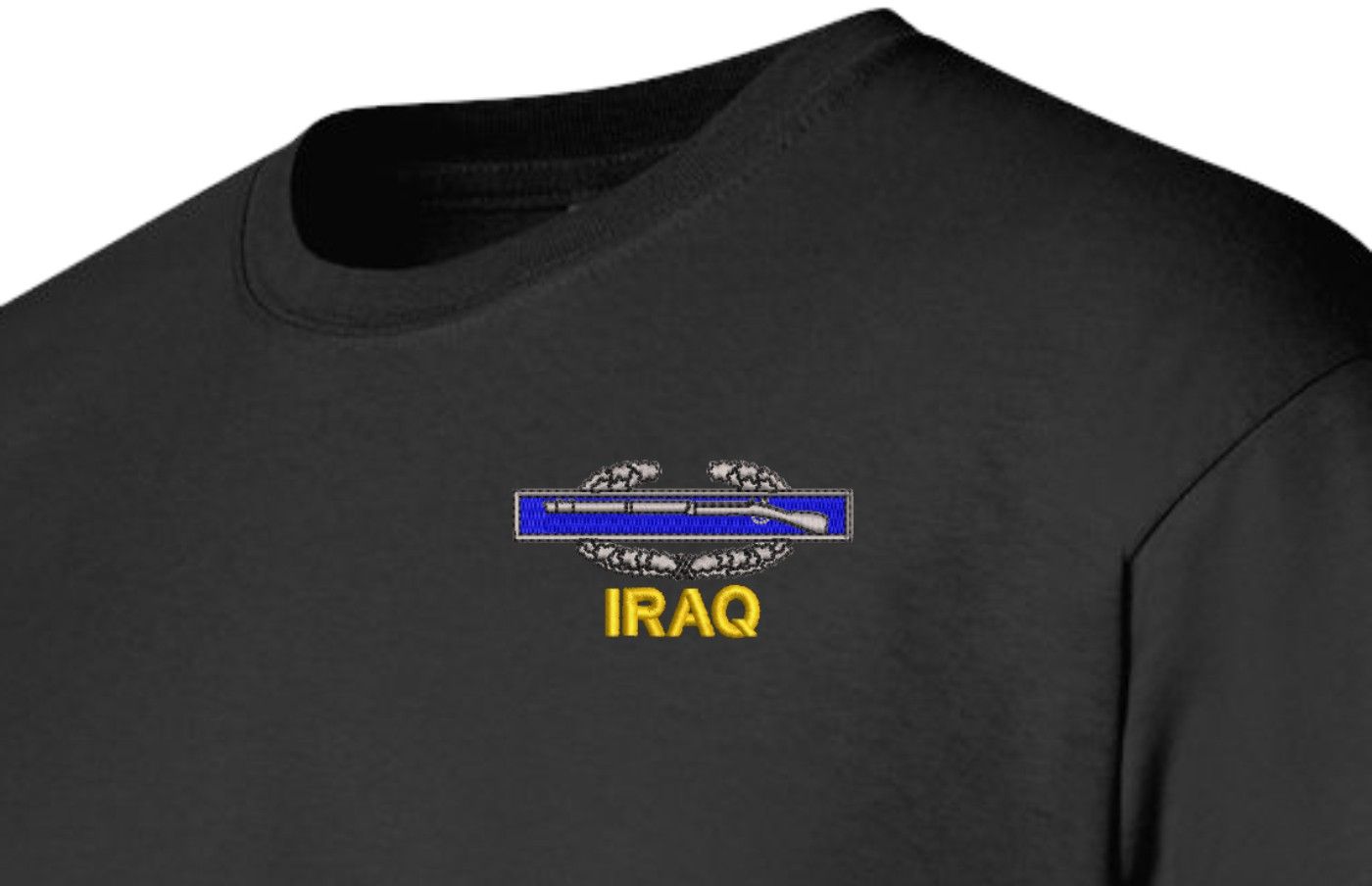 Note: Some of the Color Options pictured may not be available. Available Color Options are listed on the drop down menu above.MilitaryBest is expanding its line of apparel with this fine U.S. Army Iraq Combat Infantry Badge(CIB) T-Shirt. This Gildan brand short sleeve t-shirt is made using a 6 oz pre-shrunk 100% cotton material. This U.S. Army Iraq Combat Infantry Badge(CIB) T-Shirt will make an excellent addition to your wardrobe or a fine gift. This U.S. Army Iraq Combat Infantry Badge(CIB) T-Shirt is custom embroidered at our facilities in Scottsboro, AL when you place your order.