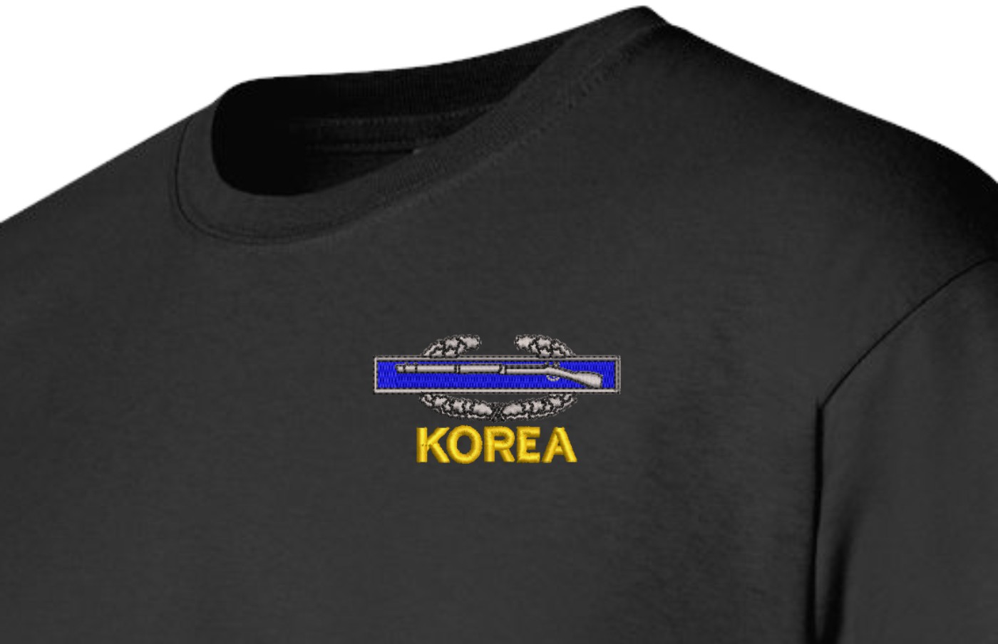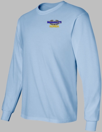 Note: Some of the Color Options pictured may not be available. Available Color Options are listed on the drop down menu above.MilitaryBest has expanded its line of apparel with this custom embroidered U.S. Army Korea Combat Infantry Badge(CIB) Long Sleeve T-Shirt. This Gildan brand long sleeve t-shirt is made using a 6 oz pre-shrunk 100% cotton material. This U.S. Army Korea Combat Infantry Badge(CIB) Long Sleeve T-Shirt will make an excellent addition to your wardrobe or a quality gift. This U.S. Army Korea Combat Infantry Badge(CIB) Long Sleeve T-Shirt is custom embroidered at our facilities in Scottsboro, Alabama.