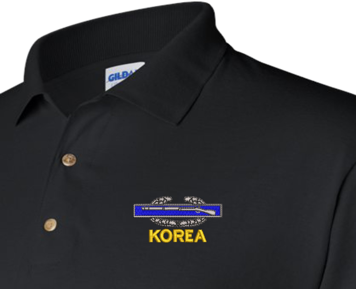 Note: Some of the Color Options pictured may not be available. Available Color Options are listed on the drop down menu above.MilitaryBest is proud to offer this quality U.S. Army Korea (CIB) Polo. Each Polo is available in either 100% Ringspun cotton pique or a 50/50 cotton/polyester blend. These quality Military Polos are proudly embroidered at our facilities in Scottsboro, AL. Support the Army MWR program by purchasing only from Licensed Vendors.