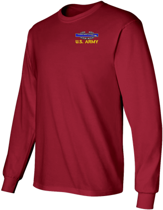 Note: Some of the Color Options pictured may not be available. Available Color Options are listed on the drop down menu above.MilitaryBest has expanded its line of apparel with this custom embroidered U.S. Army Combat Infantry Badge(CIB) Long Sleeve T-Shirt. This Gildan brand long sleeve t-shirt is made using a 6 oz pre-shrunk 100% cotton material. This U.S. Army Combat Infantry Badge(CIB) Long Sleeve T-Shirt will make an excellent addition to your wardrobe or a quality gift. This U.S. Army Combat Infantry Badge(CIB) Long Sleeve T-Shirt is custom embroidered at our facilities in Scottsboro, Alabama.