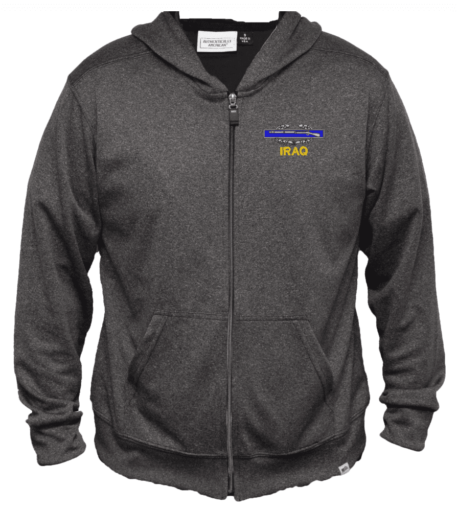 MilitaryBest proudly offers this top-quality U.S. Army Iraq (CIB) Men's 100% Polyester Heather Grey Full-Zip Hoodie. We have proudly partnered with Authentically American to offer you this Made in the USA Hoodie. Water & wrinkle resistance make this zip hoodie the perfect layering piece from the golf course to you favorite travel destination.As with all MilitaryBest items, our designs are Officially Licensed. A percentage of the sale of each MilitaryBest item is forwarded to the licensing department in support of it's MWR (Morale, Welfare, & Recreation) program. These payments are made by either ALL4U LLC or the wholesaler from where the item originated. Our team thanks you for your service and your support of these programs.