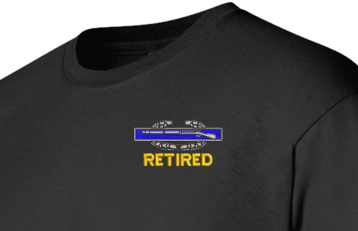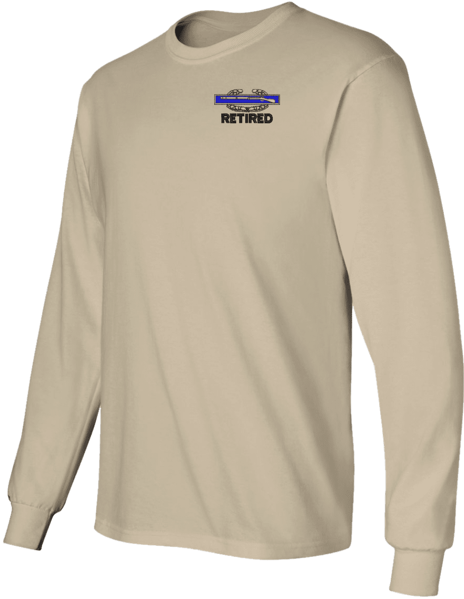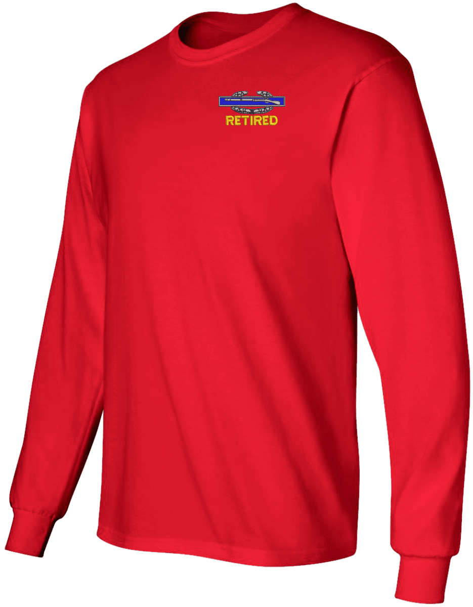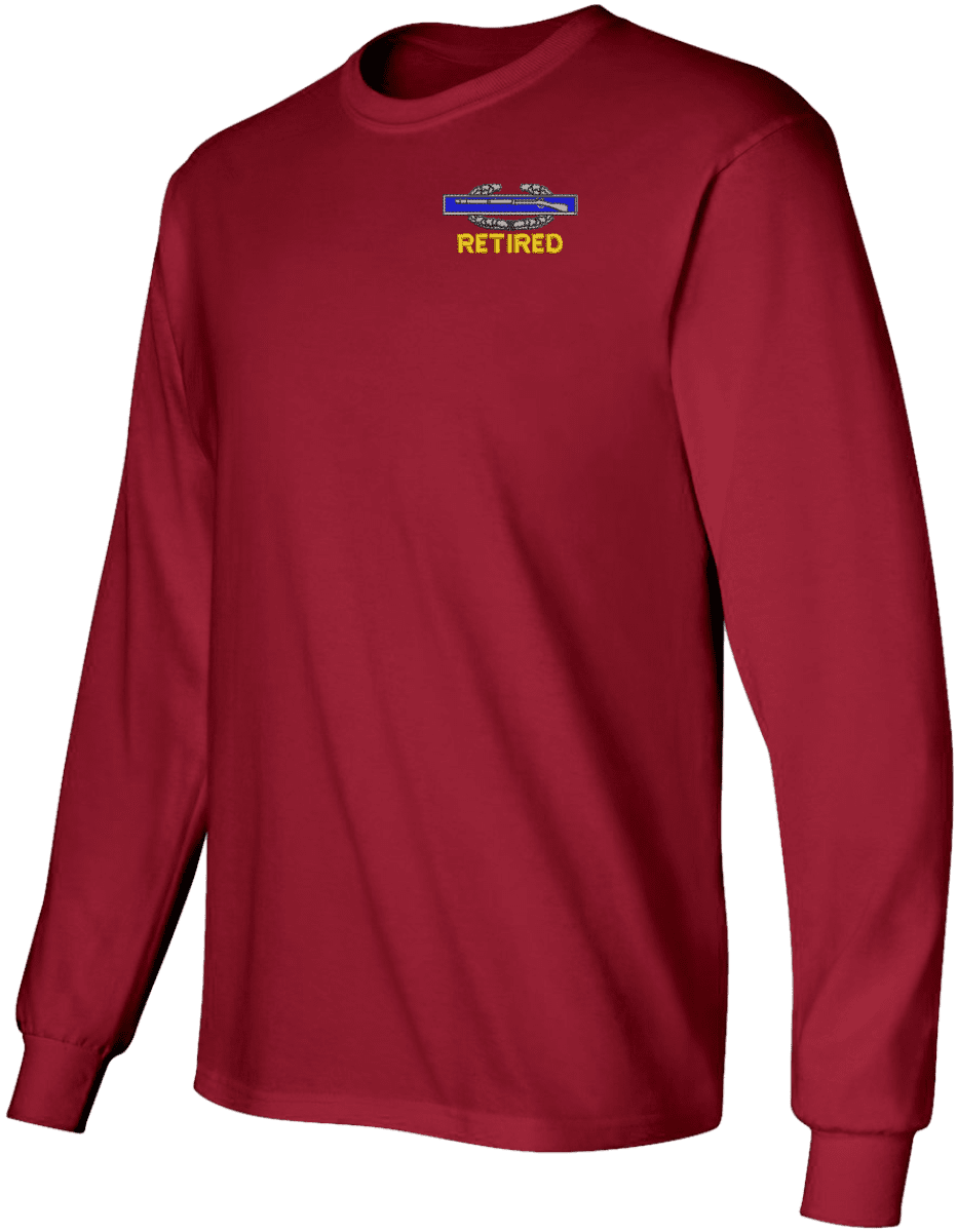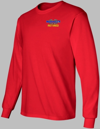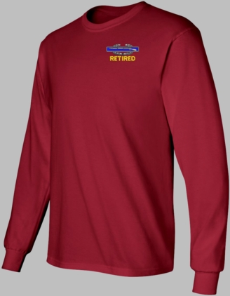 Note: Some of the Color Options pictured may not be available. Available Color Options are listed on the drop down menu above.MilitaryBest has expanded its line of apparel with this custom embroidered U.S. Army Retired Combat Infantry Badge(CIB) Long Sleeve T-Shirt. This Gildan brand long sleeve t-shirt is made using a 6 oz pre-shrunk 100% cotton material. This U.S. Army Retired Combat Infantry Badge(CIB) Long Sleeve T-Shirt will make an excellent addition to your wardrobe or a quality gift. This U.S. Army Retired Combat Infantry Badge(CIB) Long Sleeve T-Shirt is custom embroidered at our facilities in Scottsboro, Alabama.