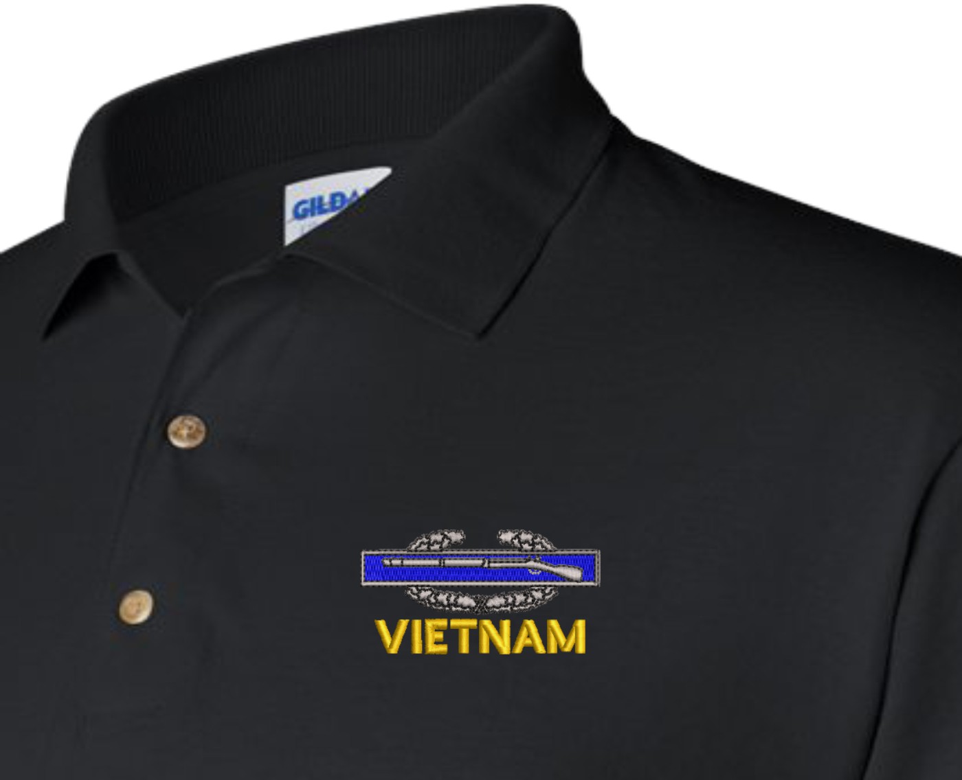 Note: Some of the Color Options pictured may not be available. Available Color Options are listed on the drop down menu above.MilitaryBest is proud to offer this quality U.S. Army Vietnam (CIB) Polo. Each Polo is available in either 100% Ringspun cotton pique or a 50/50 cotton/polyester blend. These quality Military Polos are proudly embroidered at our facilities in Scottsboro, AL. Support the Army MWR program by purchasing only from Licensed Vendors.