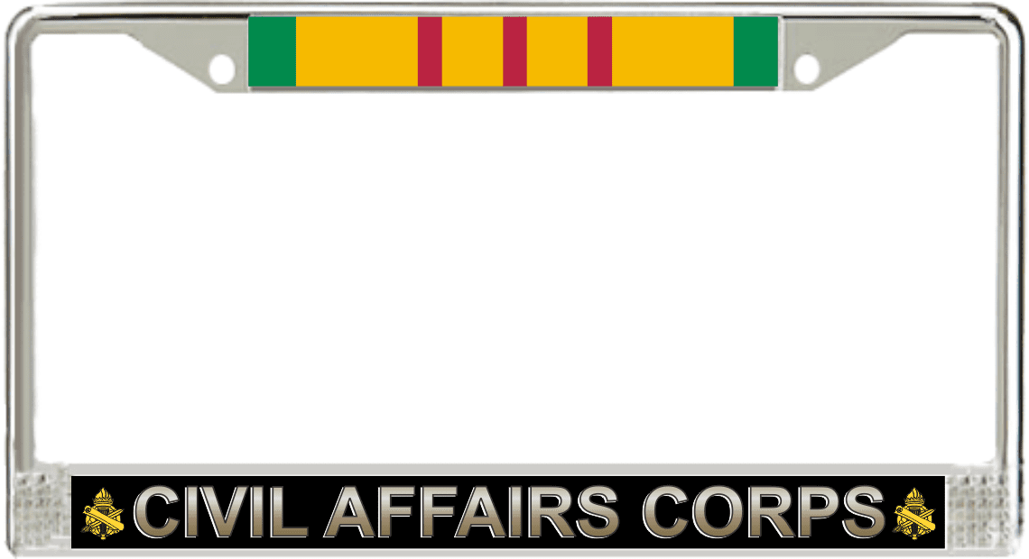 This U.S. Army Civil Affairs Corps Vietnam Veteran License Plate Frame is made from the highest quality finished metal alloy. Each one is designed to provide years of use. Each is designed and produced in our facility in Scottsboro, Alabama. Our Military License Plate Frames are standard designs and have been a staple in our product line for 15 years. Please check with your state and local regulations regarding suitability for displaying this License Plate Frame on you vehicle since these regulations may have changed over time.A percentage of the sale of each MilitaryBest item is forwarded to the licensing departments of each respective branch of service in support of the MWR (Morale, Welfare, & Recreation) program. These payments are made by either ALL4U LLC or the wholesaler from where the item originated. Our team thanks you for your service and your support of these programs.