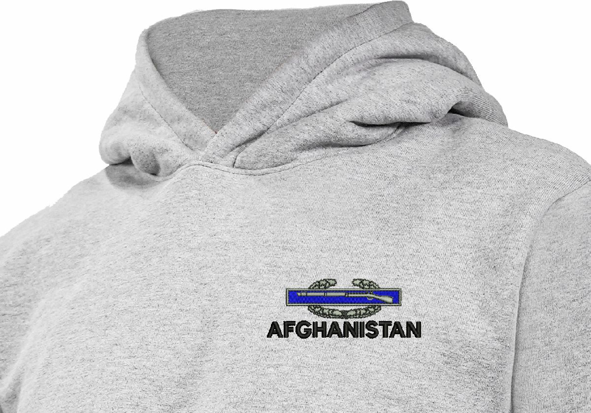 Striving to provide you with the highest quality apparel made in the United States, MilitaryBest is proud to offer this U.S. Army Combat Infantry Badge (CIB) Afghanistan Heavy Weight Fleece Hoodie. Manufactured by WSI Sportswear in Minnesota and Embroidered by us here at MilitaryBest in Alabama; this fleece hoodie is 100% Made in the USA! We aim to provide you with soft, comfortable, dry-fit, American-made clothing that allows you to be your best.*For washing we recommend machine wash cold with like colors, and line dry.PRODUCT FEATURES