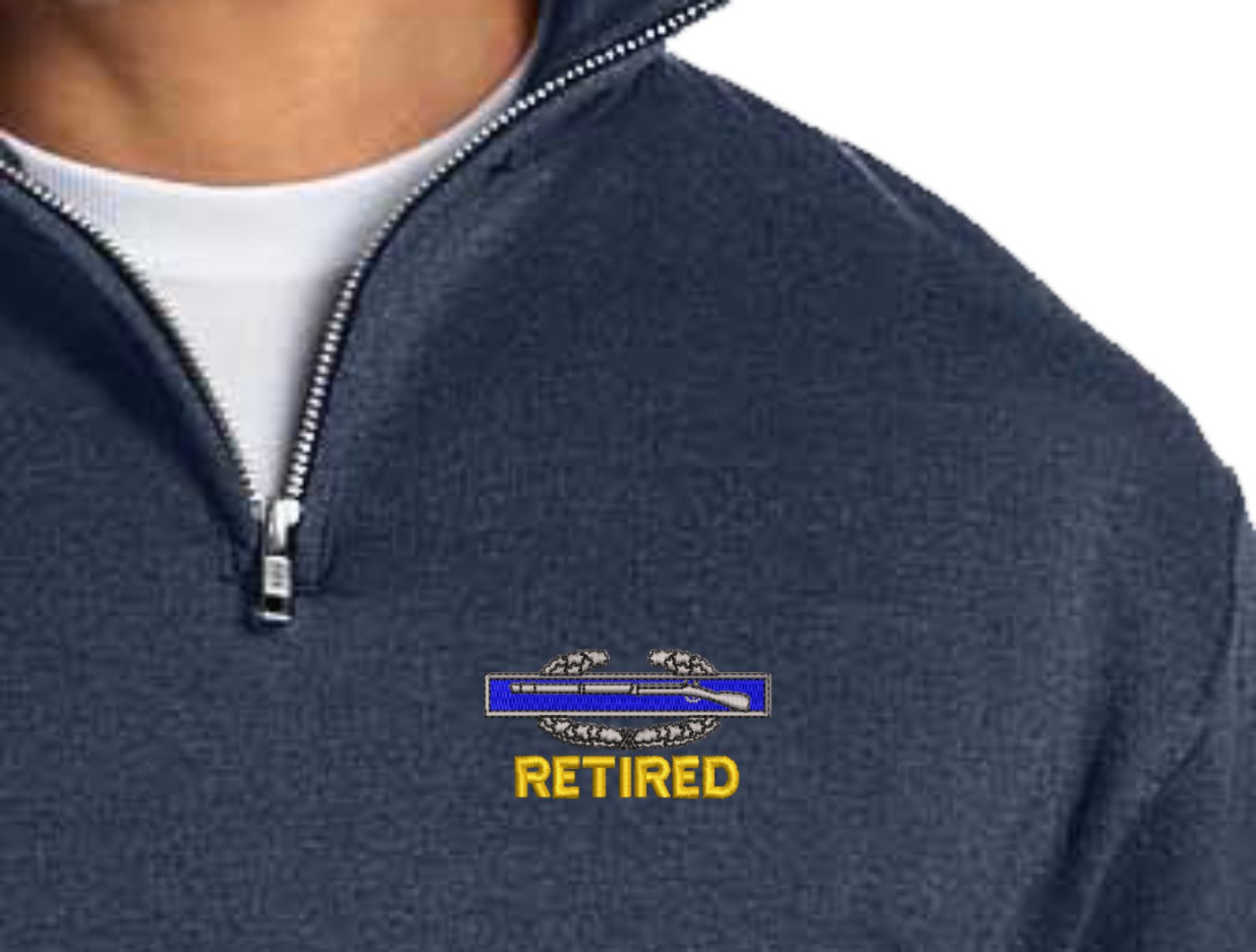 MilitaryBest is proud to offer this U.S. Army Combat Infantry Badge Retired Embroidered Embroidered Quarter-Zip Pullover. This quality shirt is embroidered by our MilitaryBest team in Northeast Alabama.PRODUCT FEATURES