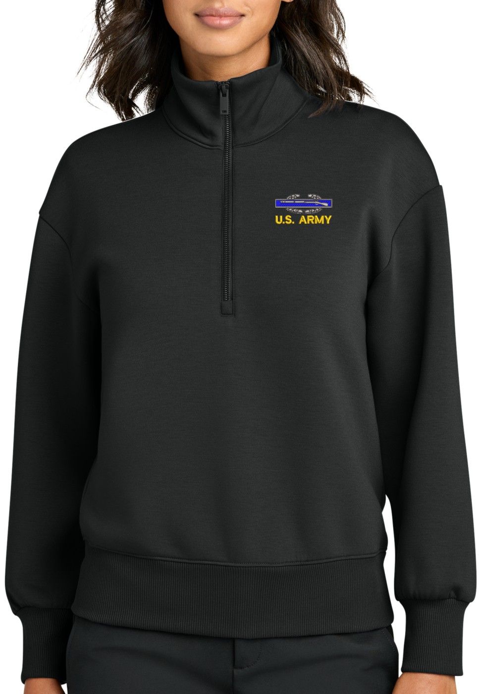 MilitaryBest is proud to offer this U.S. Army Combat Infantry Badge with Text Women's Soft Spacer Quarter-Zip. This quarter-zip is embroidered by our MilitaryBest team in Northeast Alabama. These quarter-zips are made using spacer yarn to provide light insulation with a soft structure, they also fight odor and provide light UV ray protection.Care Instructions: Turn Garment Inside Out. Machine Wash Cold With Like Colors. Only Non-Chlorine Bleach, When Needed. Tumble Dry Low, Remove Promptly. Cool Iron, If Necessary. Do Not Use Fabric Softeners Or Dryer Sheets.
