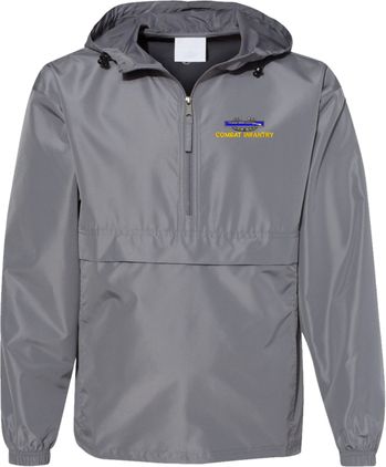 MilitaryBest is proud to offer this quality U.S. Army Combat Infantry with CIB Hooded Windbreaker. Also known as an Anorak Jacket, this windbreaker is designed to keep wind and water out. With a design embroidered over the left chest, this windbreaker is embroidered to order at our facilities in Scottsboro, AL.. This windbreaker can be packed into the mesh lined pouch pocket for a more portable method of storage.- 100% Polyester