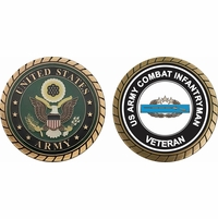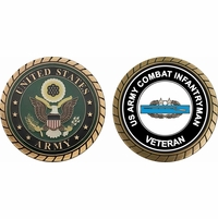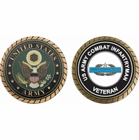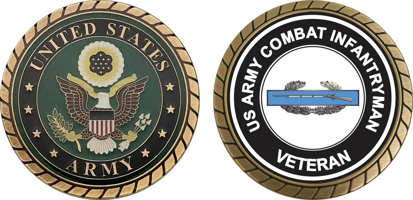 This 1 3/4” U.S. Army Combat Infantryman CIB 1st Award Veteran Challenge Coin is proudly offered by MilitaryBest. This Officially Licensed Army coin has beautiful enamel finish on one side and an organized crisp clean U.S. Army Combat Infantryman CIB 1st Award Veteran design on the opposite side.
