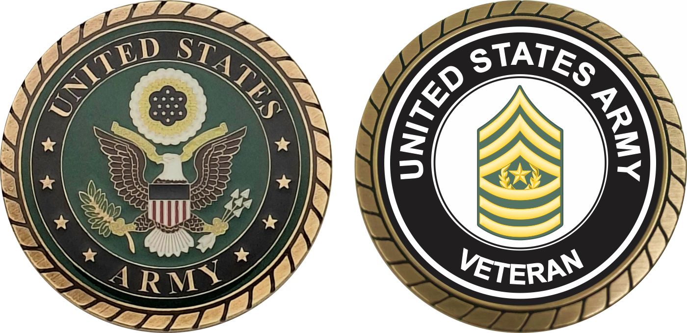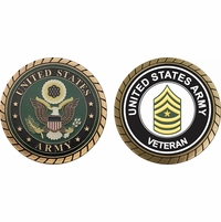 This 1 3/4” U.S. Army Command Sergeant Major Veteran Challenge Coin is proudly offered by MilitaryBest. This Officially Licensed Army coin has beautiful enamel finish on one side and an organized crisp clean U.S. Army Command Sergeant Major Veteran design on the opposite side.