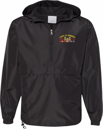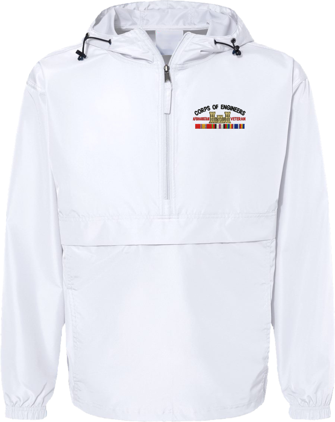 MilitaryBest is proud to offer this quality U.S. Army Corps of Engineers Afghanistan Veteran Hooded Windbreaker. Also known as an Anorak Jacket, this windbreaker is designed to keep wind and water out. With a design embroidered over the left chest, this windbreaker is embroidered to order at our facilities in Scottsboro, AL.. This windbreaker can be packed into the mesh lined pouch pocket for a more portable method of storage.- 100% Polyester