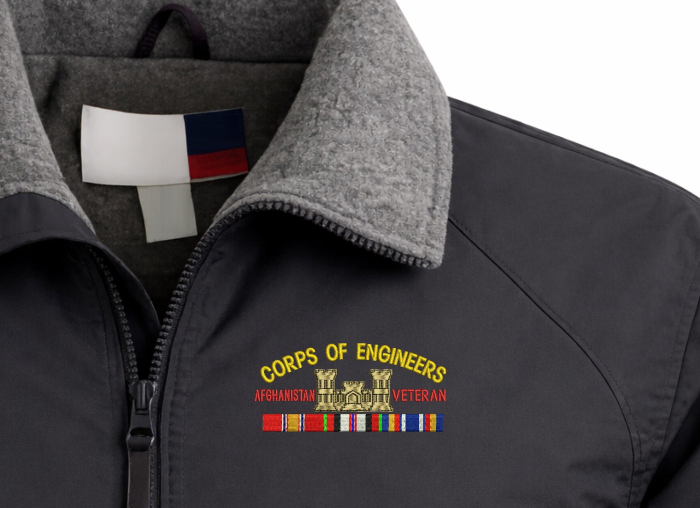 Note: Some of the Color Options pictured may not be available. Available Color Options are listed on the drop down menu above.MilitaryBest is proud to offer this quality U.S. Army Corps of Engineers Afghanistan Veteran 3-Season Jacket. This 3-Season Jacket is made from a 3-Layer system consisting of a nylon shell, an insulator layer, Nylon-lined sleeves, and an inside layer of fleece for comfort. The jacket features include a sturdy black enamel front-zipper, raglan sleeves, outsize zip pockets, an inside zip security pocket, YKK zippers, and a banded-bottom. This Jacket will make an excellent addition to your wardrobe, or a quality gift. Your satisfaction is guaranteed! Depending on your location this jacket can be worn in fall, winter, and spring. These quality Military Jackets are proudly embroidered at our facilities in Scottsboro, AL. Support the Army MWR program by purchasing only from Licensed Vendors.