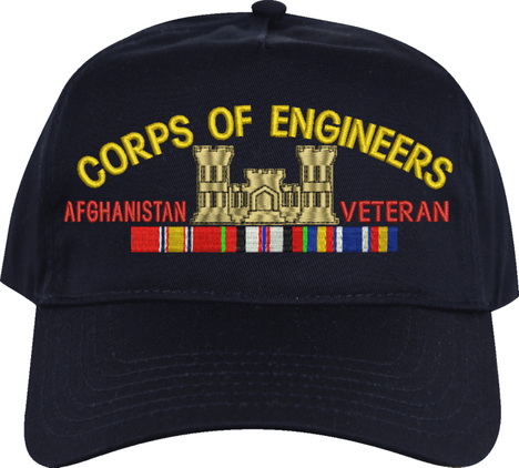 MilitaryBest is proud to offer this U.S. Army Corps of Engineers Afghanistan Veteran Embroidered Cap. This cap is available in a 5 panel high profile or 6 panel low profile styling. All our caps are made from top quality materials. This cap would make a wonderful addition to your collection or a great gift! All custom embroidery is done at our facility in Scottsboro, AL. *Caps ordered with embroidered back text requires an additional 1 to 2 days of production time. All personalized caps will be embroidered in ALL CAPITAL LETTERS. Caps personalized with back text are not returnable unless there is a material defect in the cap.A percentage of the sale of each MilitaryBest item is forwarded to the licensing departments of each respective branch of service in support of the MWR (Morale, Welfare, & Recreation) program. These payments are made by either ALL4U LLC or the wholesaler from where the item originated. Our team thanks you for your service and your support of these programs.