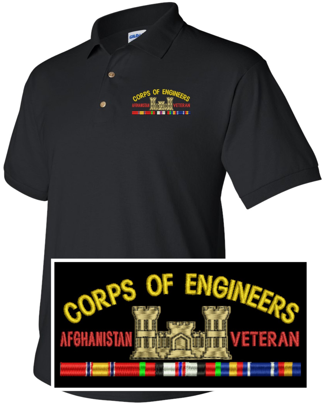 MilitaryBest is proud to offer this quality U.S. Army Corps of Engineers Afghanistan Veteran Polo. Each Polo is available in either 100% Ringspun cotton pique or a 50/50 cotton/polyester blend. These quality Military Polos are proudly embroidered at our facilities in Scottsboro, AL. Support the Army MWR program by purchasing only from Licensed Vendors.