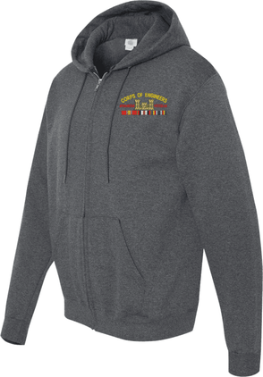 MilitaryBest has expanded its line of apparel with this custom embroidered U.S. Army Corps of Engineers Afghanistan Veteran Zippered Hoodie. Each Hoodie is direct embroidered onto a Champion brand 9.5 oz 50/50 Cotton Poly blend. This will make an excellent addition to your wardrobe, or a great gift. Your satisfaction is Guaranteed! These quality zippered hoodies are proudly embroidered at our facilities in Scottsboro, AL. Support the Army MWR program by purchasing only from Licensed Vendors.