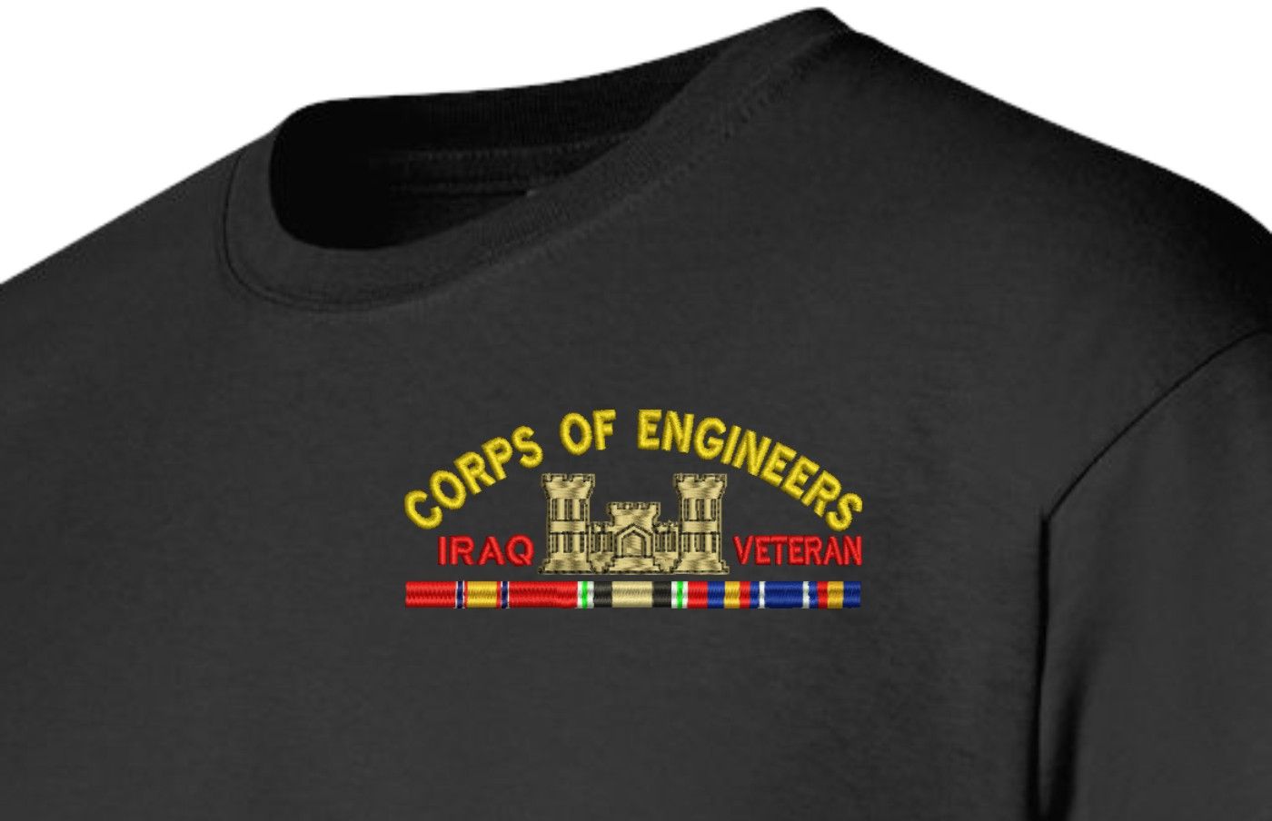 Note: Some of the Color Options pictured may not be available. Available Color Options are listed on the drop down menu above. Yellow colored text is embroidered in black on Khaki Tan and White shirts.MilitaryBest is proud to offer this U.S. Army Corps of Engineers Iraq Veteran T-Shirt. These quality Military T-Shirts are proudly embroidered at our facilities in Scottsboro, AL. Support the Army MWR program by purchasing only from Licensed Vendors.