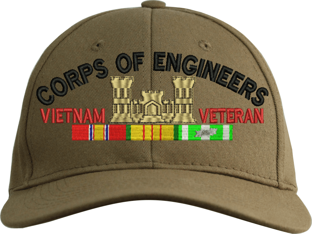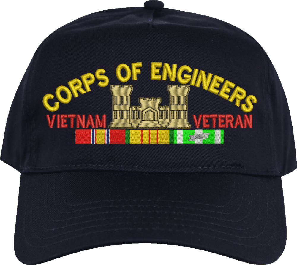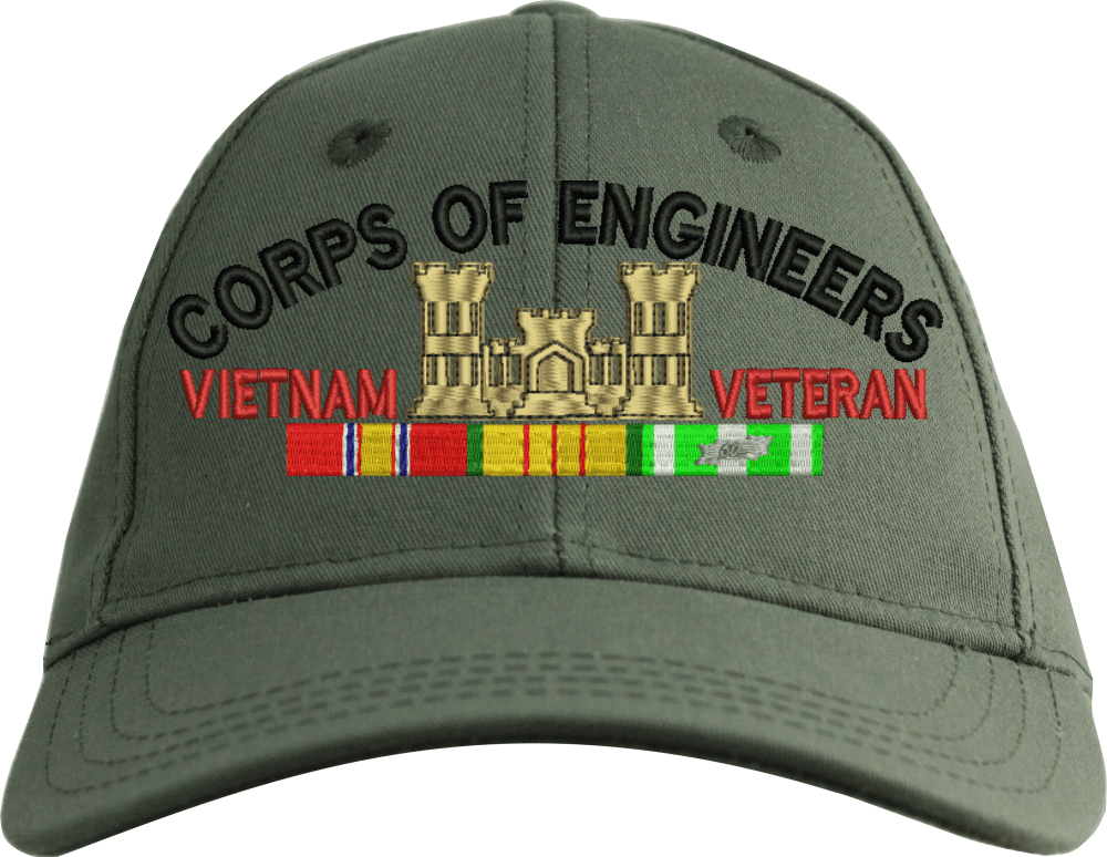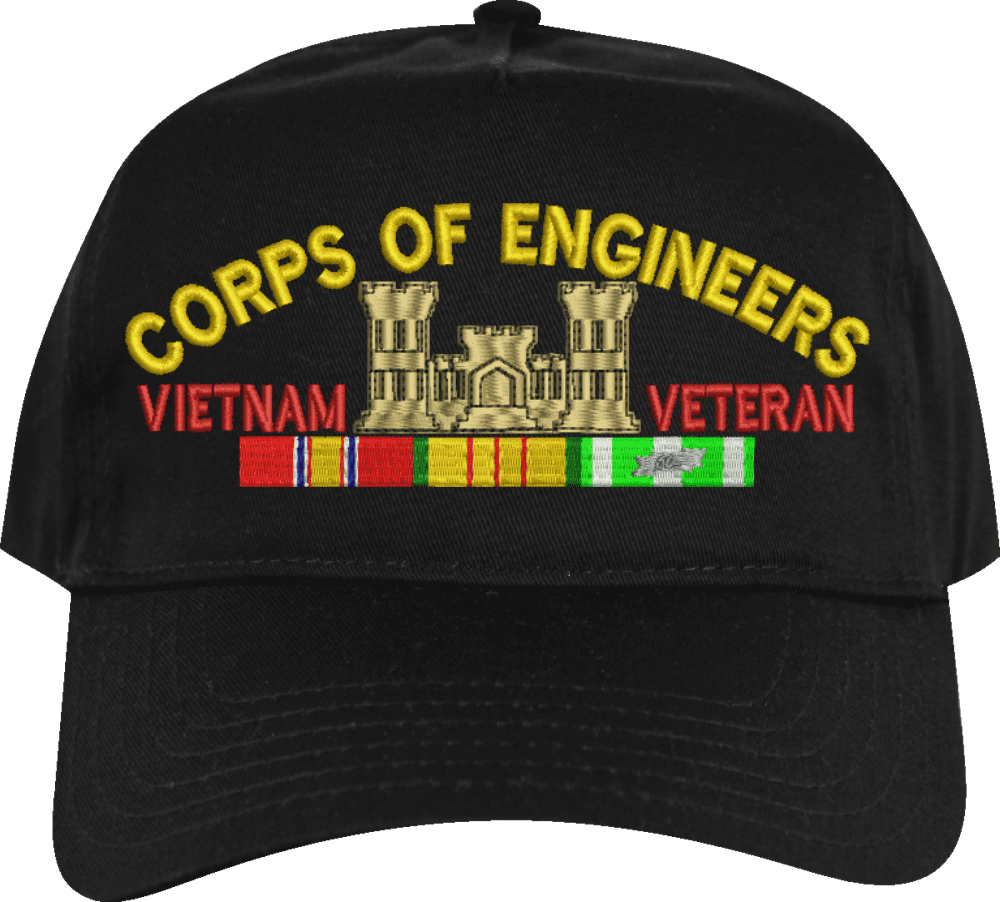 MilitaryBest is proud to offer this U.S. Army Corps of Engineers Vietnam Veteran Embroidered Cap. This cap is available in a 5 panel high profile or 6 panel low profile styling. All our caps are made from top quality materials. This cap would make a wonderful addition to your collection or a great gift! All custom embroidery is done at our facility in Scottsboro, AL. *Caps ordered with embroidered back text requires an additional 1 to 2 days of production time. All personalized caps will be embroidered in ALL CAPITAL LETTERS. Caps personalized with back text are not returnable unless there is a material defect in the cap.A percentage of the sale of each MilitaryBest item is forwarded to the licensing departments of each respective branch of service in support of the MWR (Morale, Welfare, & Recreation) program. These payments are made by either ALL4U LLC or the wholesaler from where the item originated. Our team thanks you for your service and your support of these programs.