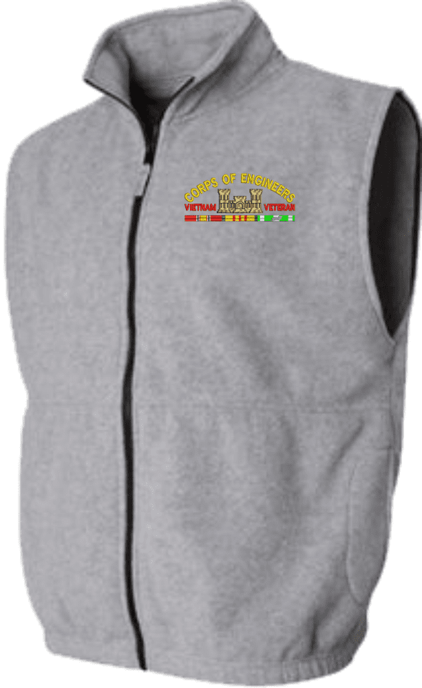 Note: Due to supply chain disruptions, some colors and sizes may not be available in the same Brand, in these cases a brand of comparable quality will be used. Feel free to call in advance of your order, with questions you may have.MilitaryBest is proud to offer this quality U.S. Army Corps of Engineers Vietnam Veteran Fleece Vest. This Fleece Vest features a convertible collar with dyed-to-match zipper pull, oversized nylon reinforced slash pockets, and an elastic hem. It is made using a 100% anti-pill polyester Fleece Vest. This Fleece Vest will make an excellent addition to your wardrobe, or a quality gift. Your satisfaction is guaranteed! These quality fleece vests are proudly embroidered at our facilities in Scottsboro, AL. Support the Army MWR program by purchasing only from Licensed Vendors. To all of our Vietnam Veterans, Welcome Home!