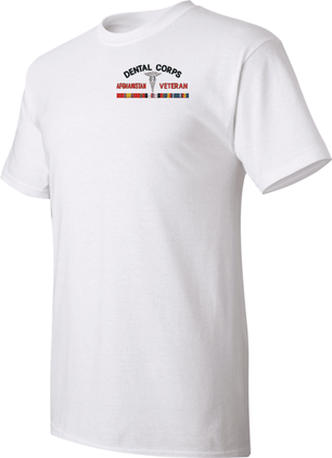 Note: Some of the Color Options pictured may not be available. Available Color Options are listed on the drop down menu above. Yellow colored text is embroidered in black on Khaki Tan and White shirts.MilitaryBest is proud to offer this U.S. Army Dental Corps Afghanistan Veteran T-Shirt. These quality Military T-Shirts are proudly embroidered at our facilities in Scottsboro, AL. Support the Army MWR program by purchasing only from Licensed Vendors.