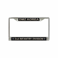 U.S. Army DMZ Korea 2nd Infantry Division License Plate FrameThis U.S. Army DMZ Korea 2nd Infantry Divsion License Plate Frame is made from the highest quality finished metal alloy. Each one has a high gloss enamel finished look and is designed to provide years of use. Each is designed in our facility in Scottsboro, AL.