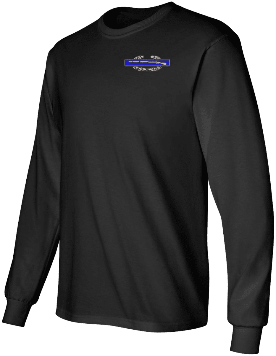 MilitaryBest has expanded its line of apparel with this custom embroidered U.S. Army Combat Infantry Badge(CIB) Long Sleeve T-Shirt. This Gildan brand long sleeve t-shirt is made using a 6 oz pre-shrunk 100% cotton material. This U.S. Army Combat Infantry Badge(CIB) Long Sleeve T-Shirt will make an excellent addition to your wardrobe or a quality gift. This U.S. Army Combat Infantry Badge(CIB) Long Sleeve T-Shirt is custom embroidered at our facilities in Scottsboro, Alabama.