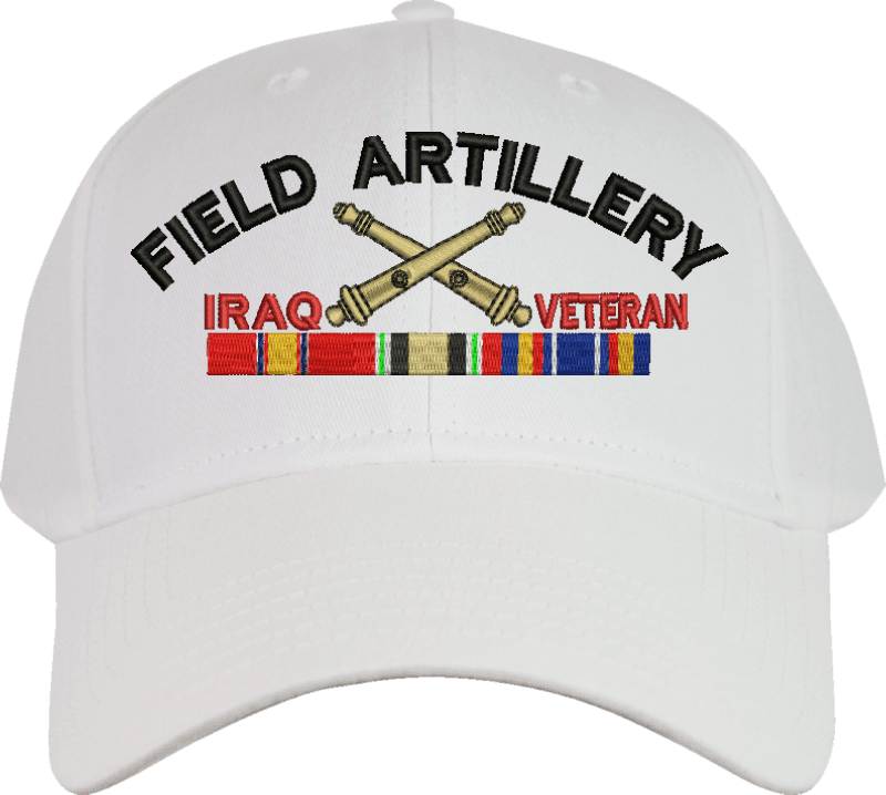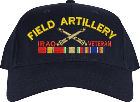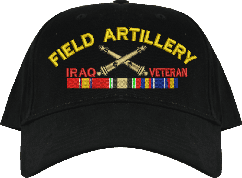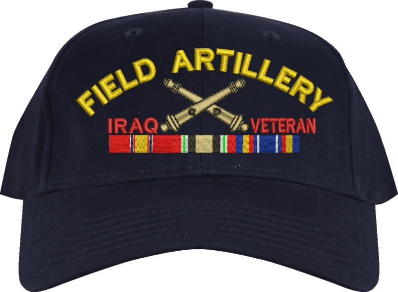 MilitaryBest is proud to offer this U.S. Army Field Artillery Iraq Veteran Embroidered Cap. This cap is available in a 5 panel high profile or 6 panel low profile styling. All our caps are made from top quality materials. This cap would make a wonderful addition to your collection or a great gift! All custom embroidery is done at our facility in Scottsboro, AL. *Caps ordered with embroidered back text requires an additional 1 to 2 days of production time. All personalized caps will be embroidered in ALL CAPITAL LETTERS. Caps personalized with back text are not returnable unless there is a material defect in the cap.A percentage of the sale of each MilitaryBest item is forwarded to the licensing departments of each respective branch of service in support of the MWR (Morale, Welfare, & Recreation) program. These payments are made by either ALL4U LLC or the wholesaler from where the item originated. Our team thanks you for your service and your support of these programs.