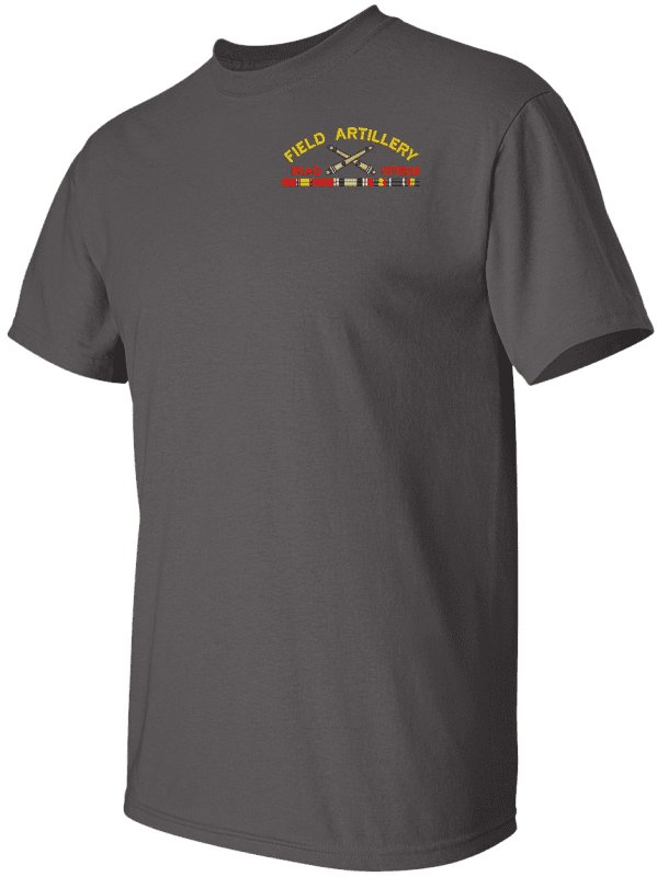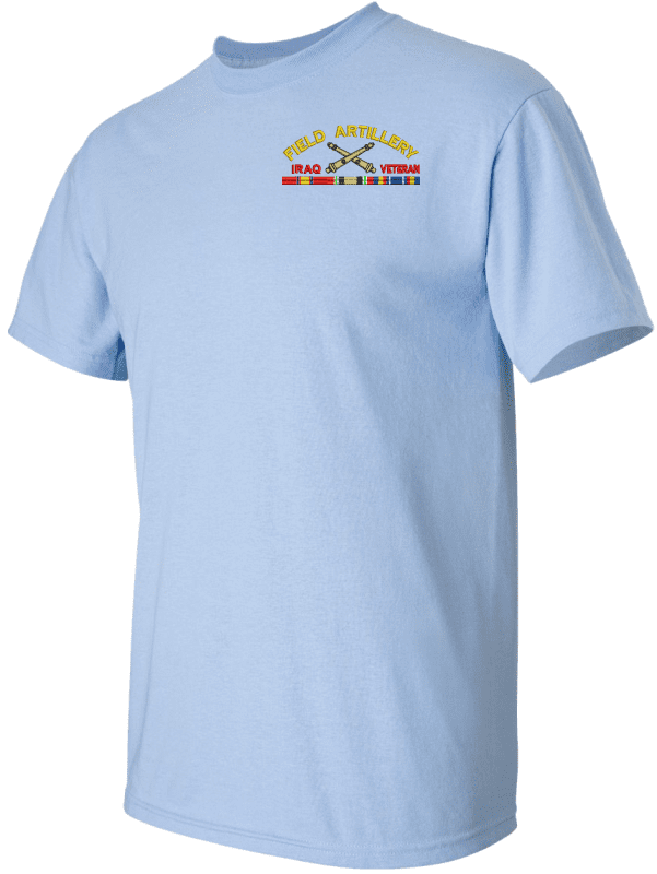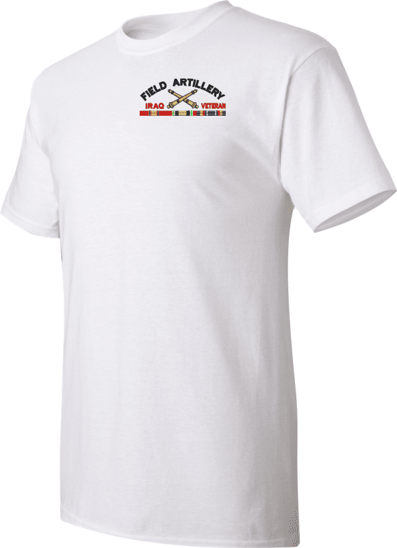 Note: Some of the Color Options pictured may not be available. Available Color Options are listed on the drop down menu above. Yellow colored text is embroidered in black on Khaki Tan and White shirts.MilitaryBest is proud to offer this U.S. Army Field Artillery Iraq Veteran T-Shirt. These quality Military T-Shirts are proudly embroidered at our facilities in Scottsboro, AL. Support the Army MWR program by purchasing only from Licensed Vendors.