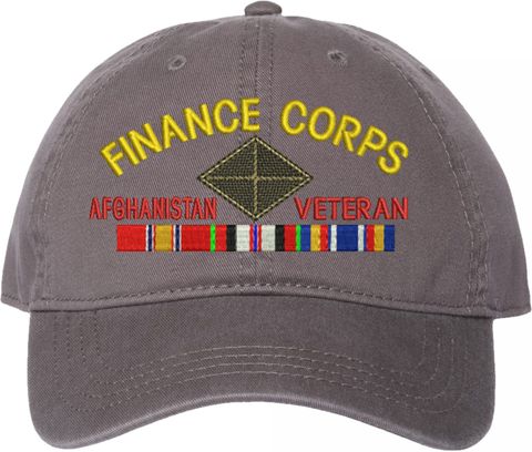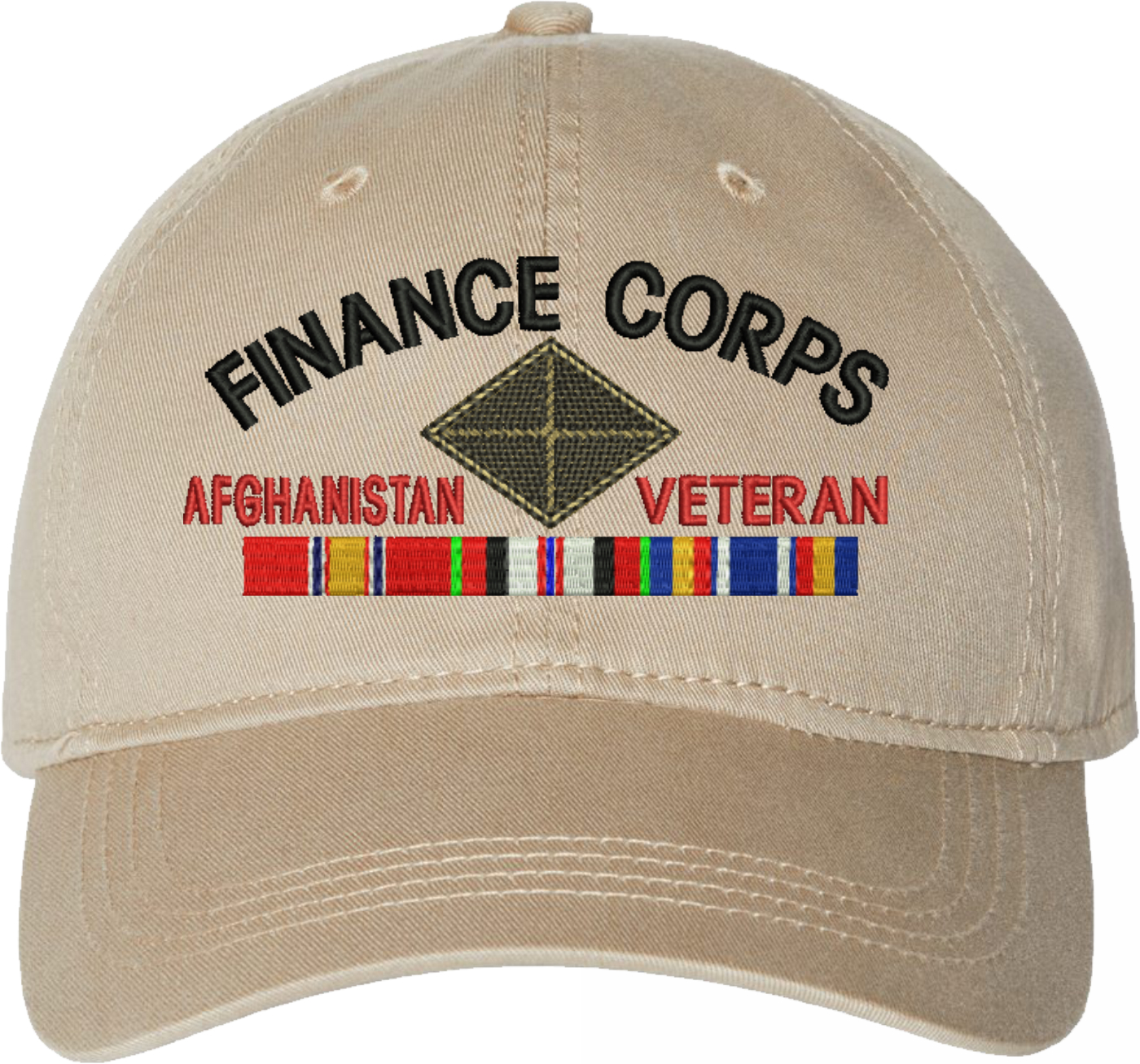 Show your Army pride with this U.S. Army Finance Corps Afghanistan Veteran Unstructured Dad Cap from MilitaryBest. Crafted from 100% washed chino twill cotton, this six-panel, low-profile cap offers a relaxed and comfortable fit. Featuring high-quality embroidery done in our Scottsboro, Alabama facility, this cap is designed with a pre-curved visor and an adjustable tri-glide buckle closure for a perfect fit. Whether for everyday wear or as a meaningful gift, this cap is a great way to honor your own or a loved one's service.For caps ordered with custom embroidered personalized text please allow an additional 3 to 5 days production time. All custom back text will be embroidered in ALL CAPITAL LETTERS. Caps with back text or eggs are non-returnable unless there is a material defect in the cap.