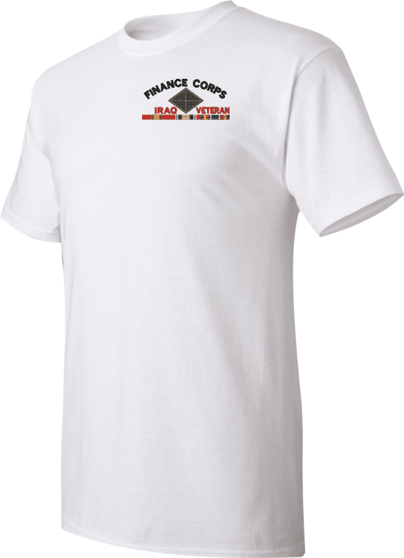 Note: Some of the Color Options pictured may not be available. Available Color Options are listed on the drop down menu above. Yellow colored text is embroidered in black on Khaki Tan and White shirts.MilitaryBest is proud to offer this U.S. Army Finance Corps Iraq Veteran T-Shirt. These quality Military T-Shirts are proudly embroidered at our facilities in Scottsboro, AL. Support the Army MWR program by purchasing only from Licensed Vendors.