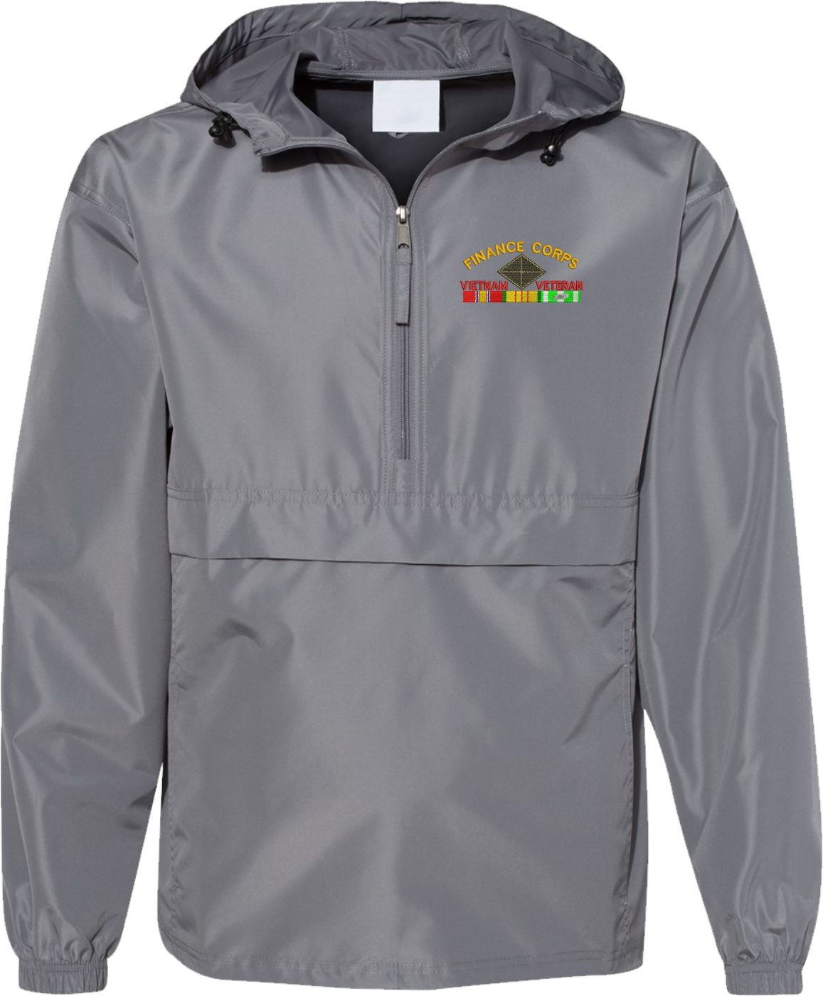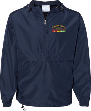 MilitaryBest is proud to offer this quality U.S. Army Finance Corps Vietnam Veteran Hooded Windbreaker. Also known as an Anorak Jacket, this windbreaker is designed to keep wind and water out. With a design embroidered over the left chest, this windbreaker is embroidered to order at our facilities in Scottsboro, AL.. This windbreaker can be packed into the mesh lined pouch pocket for a more portable method of storage.- 100% Polyester