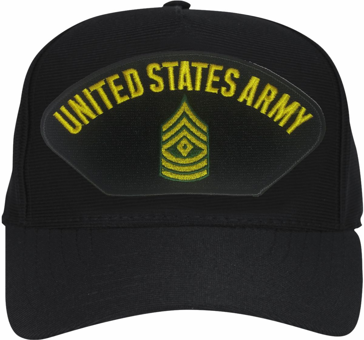 This U.S. Army First Sergeant Ball Cap is an emblematic, poly, dark under the visor cap. Each has an adjustable strap, and is available as a 5 panel high profile, 6 panel low profile, OD Green Front/Black Mesh, and a Gray Front/White Mesh cap. All MilitaryBest caps are fully guaranteed. Some people call them Military Covers or Military Hats. This Military Cap is proudly Made in The U.S.A.For caps ordered with custom embroidered personalized text please allow an additional 3 to 5 days production time. All custom back text will be embroidered in ALL CAPITAL LETTERS. Caps with back text or eggs are non-returnable unless there is a material defect in the cap. If a style is not selected the cap will be made using a high profile style cap as pictured.