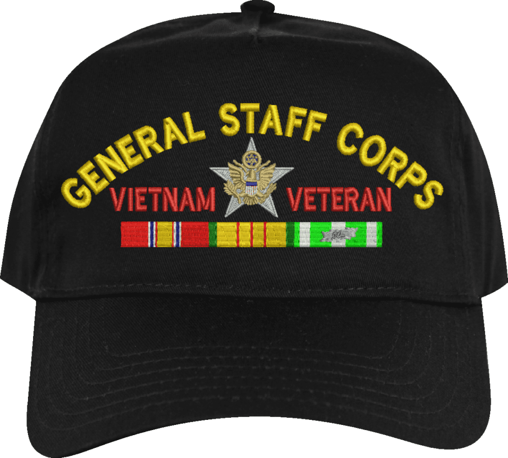 MilitaryBest is proud to offer this U.S. Army General Staff Corps Vietnam Veteran Embroidered Cap. This cap is available in a 5 panel high profile or 6 panel low profile styling. All our caps are made from top quality materials. This cap would make a wonderful addition to your collection or a great gift! All custom embroidery is done at our facility in Scottsboro, AL. *Caps ordered with embroidered back text requires an additional 1 to 2 days of production time. All personalized caps will be embroidered in ALL CAPITAL LETTERS. Caps personalized with back text are not returnable unless there is a material defect in the cap.A percentage of the sale of each MilitaryBest item is forwarded to the licensing departments of each respective branch of service in support of the MWR (Morale, Welfare, & Recreation) program. These payments are made by either ALL4U LLC or the wholesaler from where the item originated. Our team thanks you for your service and your support of these programs.