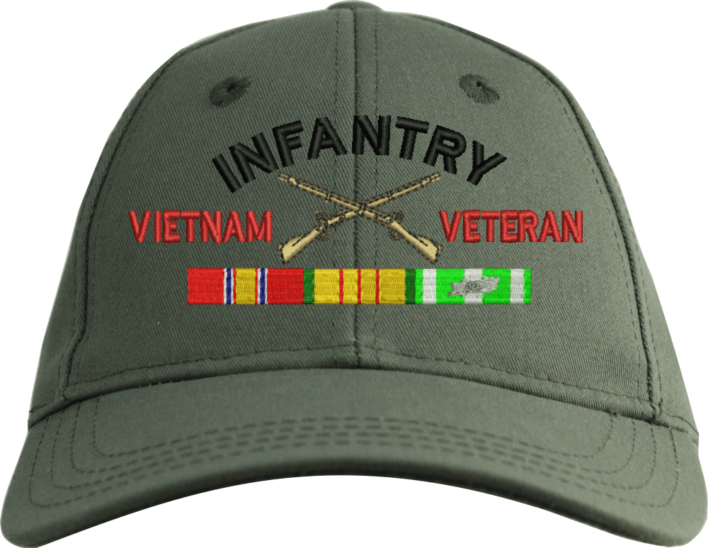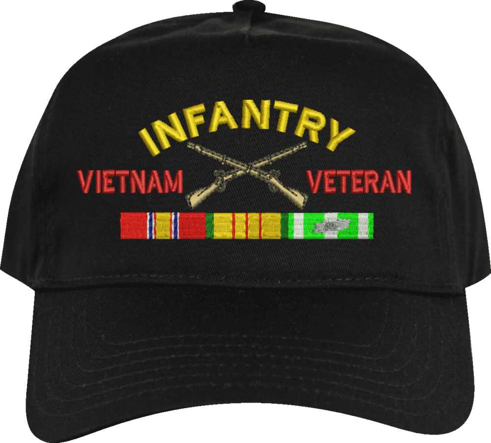 MilitaryBest is proud to offer this U.S. Army Infantry Vietnam Veteran Embroidered Cap. This cap is available in a 5 panel high profile or 6 panel low profile styling. All our caps are made from top quality materials. This cap would make a wonderful addition to your collection or a great gift! All custom embroidery is done at our facility in Scottsboro, AL. *Caps ordered with embroidered back text requires an additional 1 to 2 days of production time. All personalized caps will be embroidered in ALL CAPITAL LETTERS. Caps personalized with back text are not returnable unless there is a material defect in the cap.A percentage of the sale of each MilitaryBest item is forwarded to the licensing departments of each respective branch of service in support of the MWR (Morale, Welfare, & Recreation) program. These payments are made by either ALL4U LLC or the wholesaler from where the item originated. Our team thanks you for your service and your support of these programs.