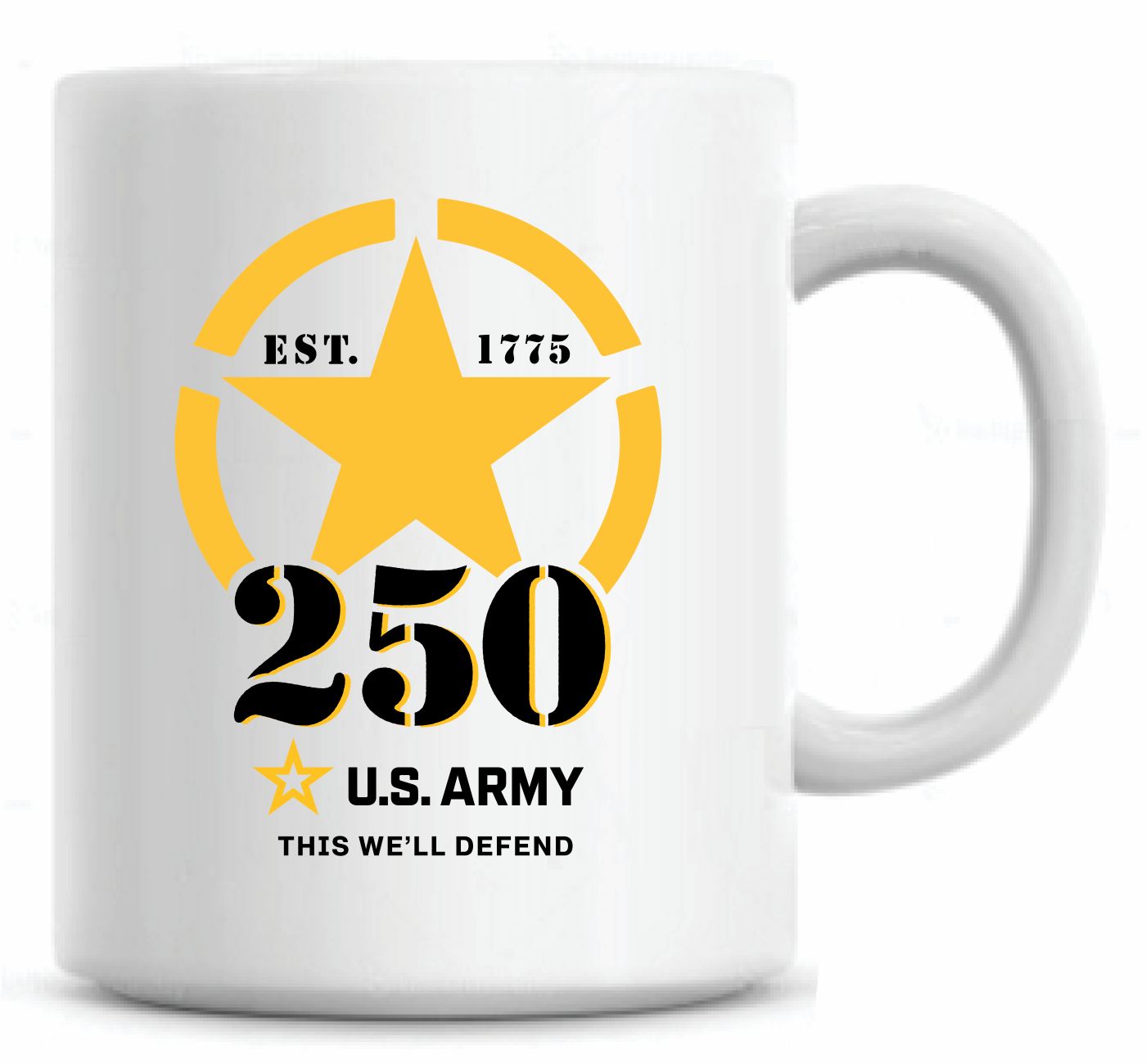 U.S. Army 250th Anniversary 11oz Coffee Mug features a sublimated insignia on the front and reverse side of the mug. Our mugs are not dishwasher safe, they are hand wash only. Each mug’s quality is guaranteed.A percentage of the sale of each MilitaryBest item is forwarded to the licensing departments of each respective branch of service in support of the MWR (Morale, Welfare, & Recreation) program. These payments are made by either ALL4U LLC or the wholesaler from where the item originated. Our team thanks you for your service and your support of these programs.