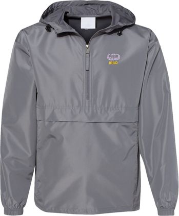 MilitaryBest is proud to offer this quality U.S. Army Iraq with Jump Wings Hooded Windbreaker. Also known as an Anorak Jacket, this windbreaker is designed to keep wind and water out. With a design embroidered over the left chest, this windbreaker is embroidered to order at our facilities in Scottsboro, AL.. This windbreaker can be packed into the mesh lined pouch pocket for a more portable method of storage.- 100% Polyester