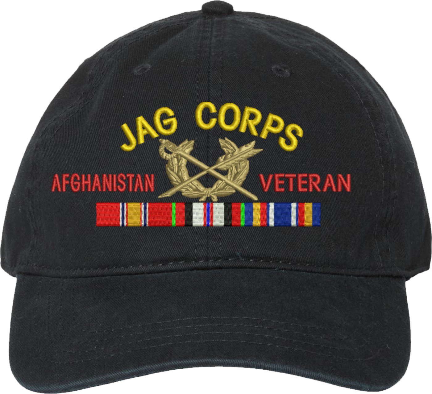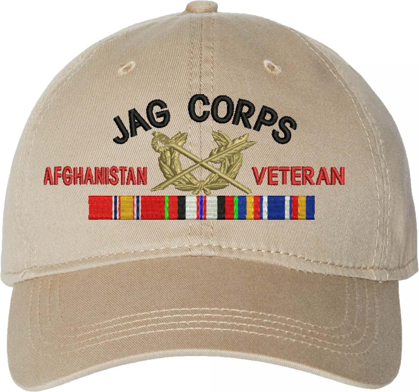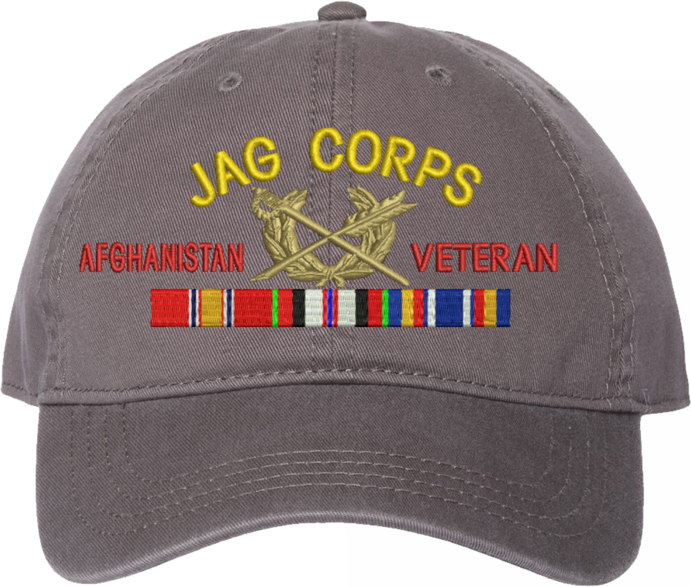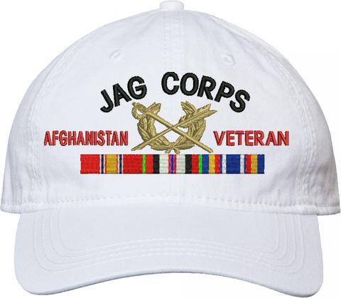Show your Army pride with this U.S. Army Judge Advocate General's Corps Afghanistan Veteran Unstructured Dad Cap from MilitaryBest. Crafted from 100% washed chino twill cotton, this six-panel, low-profile cap offers a relaxed and comfortable fit. Featuring high-quality embroidery done in our Scottsboro, Alabama facility, this cap is designed with a pre-curved visor and an adjustable tri-glide buckle closure for a perfect fit. Whether for everyday wear or as a meaningful gift, this cap is a great way to honor your own or a loved one's service.For caps ordered with custom embroidered personalized text please allow an additional 3 to 5 days production time. All custom back text will be embroidered in ALL CAPITAL LETTERS. Caps with back text or eggs are non-returnable unless there is a material defect in the cap.
