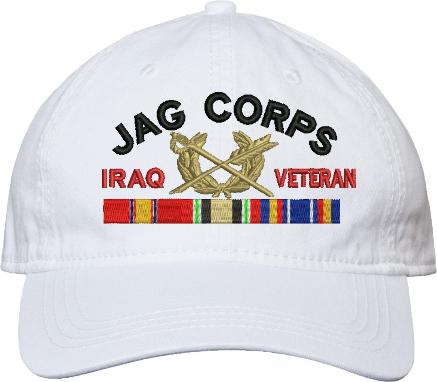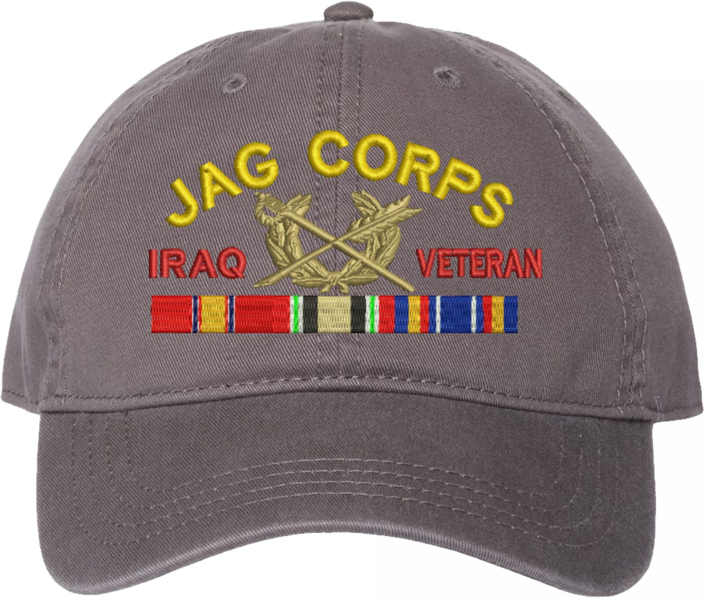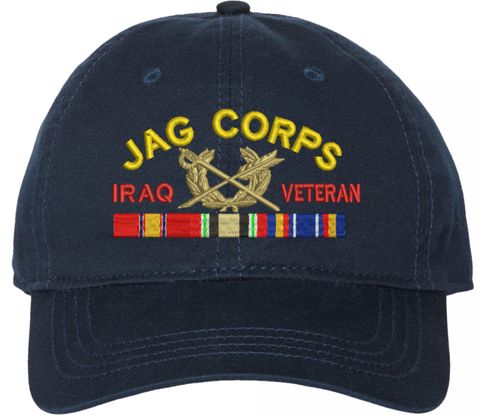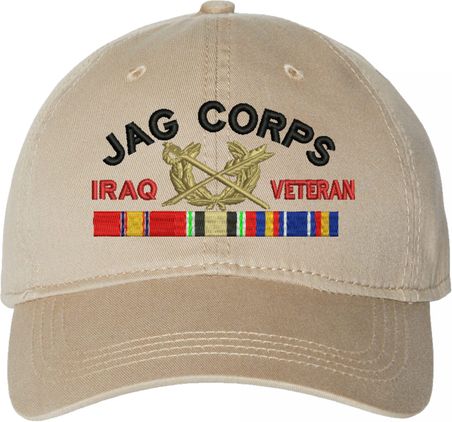 Show your Army pride with this U.S. Army Judge Advocate General's Corps Iraq Veteran Unstructured Dad Cap from MilitaryBest. Crafted from 100% washed chino twill cotton, this six-panel, low-profile cap offers a relaxed and comfortable fit. Featuring high-quality embroidery done in our Scottsboro, Alabama facility, this cap is designed with a pre-curved visor and an adjustable tri-glide buckle closure for a perfect fit. Whether for everyday wear or as a meaningful gift, this cap is a great way to honor your own or a loved one's service.For caps ordered with custom embroidered personalized text please allow an additional 3 to 5 days production time. All custom back text will be embroidered in ALL CAPITAL LETTERS. Caps with back text or eggs are non-returnable unless there is a material defect in the cap.