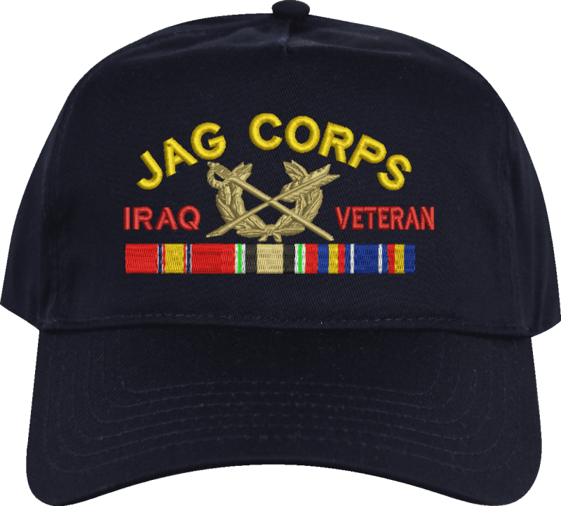 MilitaryBest is proud to offer this U.S. Army Judge Advocate General's Corps Iraq Veteran Embroidered Cap. This cap is available in a 5 panel high profile or 6 panel low profile styling. All our caps are made from top quality materials. This cap would make a wonderful addition to your collection or a great gift! All custom embroidery is done at our facility in Scottsboro, AL. *Caps ordered with embroidered back text requires an additional 1 to 2 days of production time. All personalized caps will be embroidered in ALL CAPITAL LETTERS. Caps personalized with back text are not returnable unless there is a material defect in the cap.A percentage of the sale of each MilitaryBest item is forwarded to the licensing departments of each respective branch of service in support of the MWR (Morale, Welfare, & Recreation) program. These payments are made by either ALL4U LLC or the wholesaler from where the item originated. Our team thanks you for your service and your support of these programs.