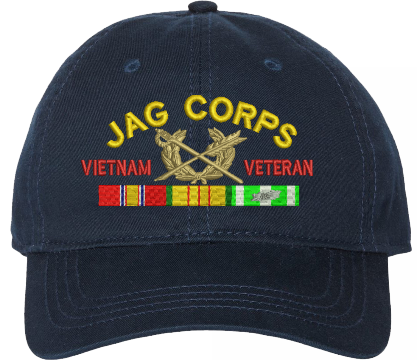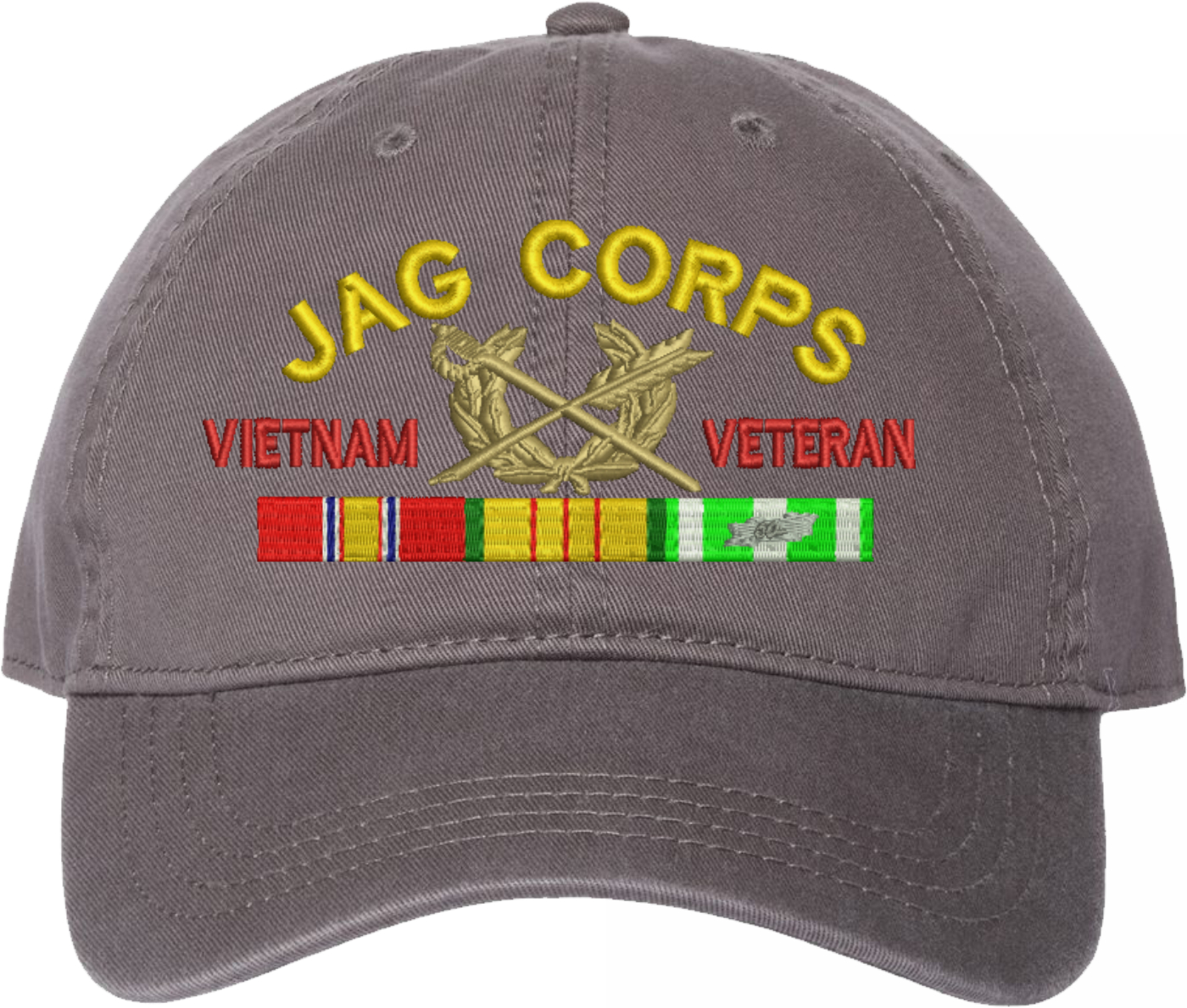 Show your Army pride with this U.S. Army Judge Advocate General's Corps Vietnam Veteran Unstructured Dad Cap from MilitaryBest. Crafted from 100% washed chino twill cotton, this six-panel, low-profile cap offers a relaxed and comfortable fit. Featuring high-quality embroidery done in our Scottsboro, Alabama facility, this cap is designed with a pre-curved visor and an adjustable tri-glide buckle closure for a perfect fit. Whether for everyday wear or as a meaningful gift, this cap is a great way to honor your own or a loved one's service.For caps ordered with custom embroidered personalized text please allow an additional 3 to 5 days production time. All custom back text will be embroidered in ALL CAPITAL LETTERS. Caps with back text or eggs are non-returnable unless there is a material defect in the cap.