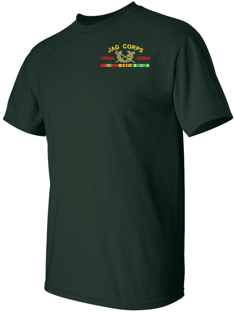 Note: Some of the Color Options pictured may not be available. Available Color Options are listed on the drop down menu above. Yellow colored text is embroidered in black on Khaki Tan and White shirts.MilitaryBest is proud to offer this U.S. Army Judge Advocate General's Corps Vietnam Veteran T-Shirt. These quality Military T-Shirts are proudly embroidered at our facilities in Scottsboro, AL. Support the Army MWR program by purchasing only from Licensed Vendors. To all of our Vietnam Veterans, Welcome Home!